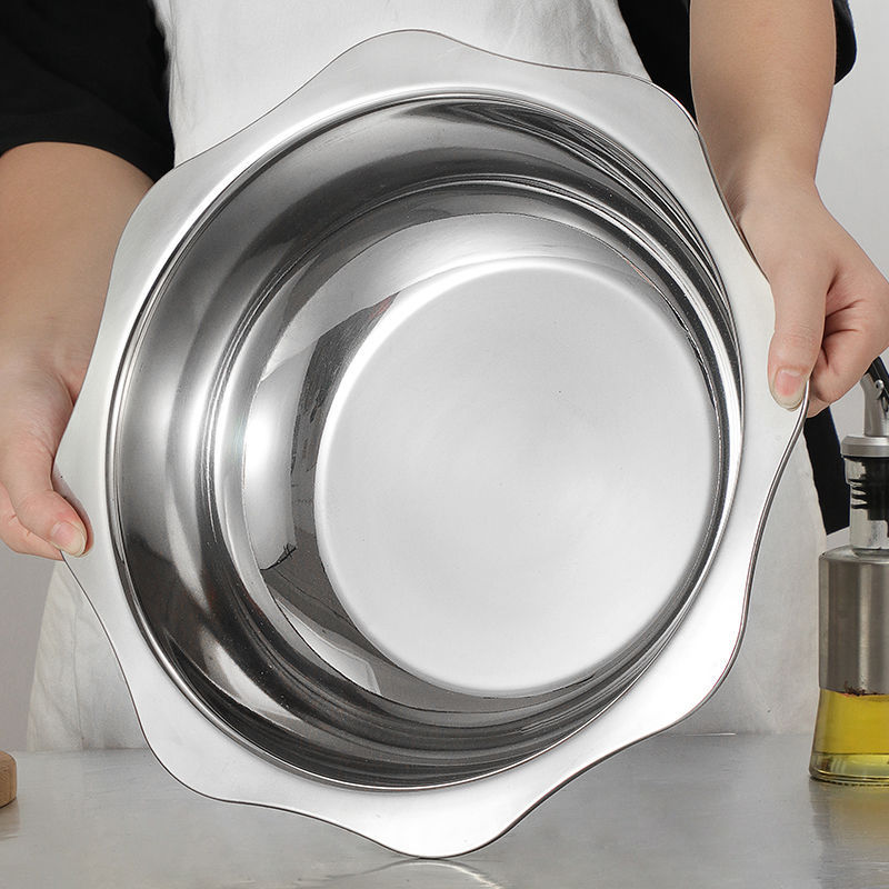 304ステンレスの冷たい皮のどらの皿の双耳の円形の大きいサイズの餅の皿の製作道具の平底の蒸し料理の食事の皿のトレー