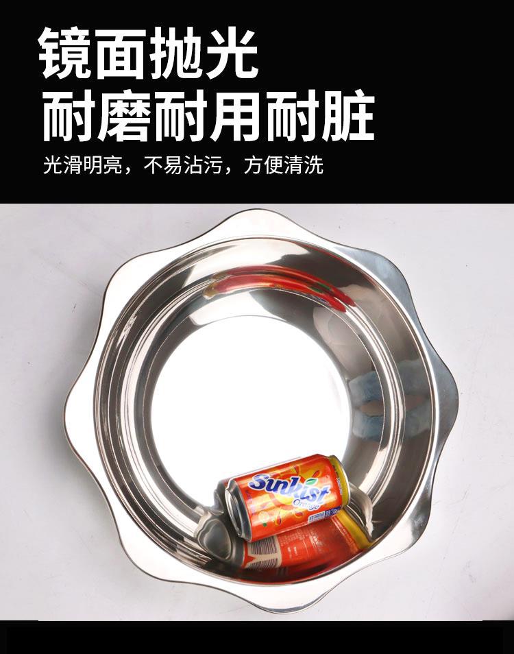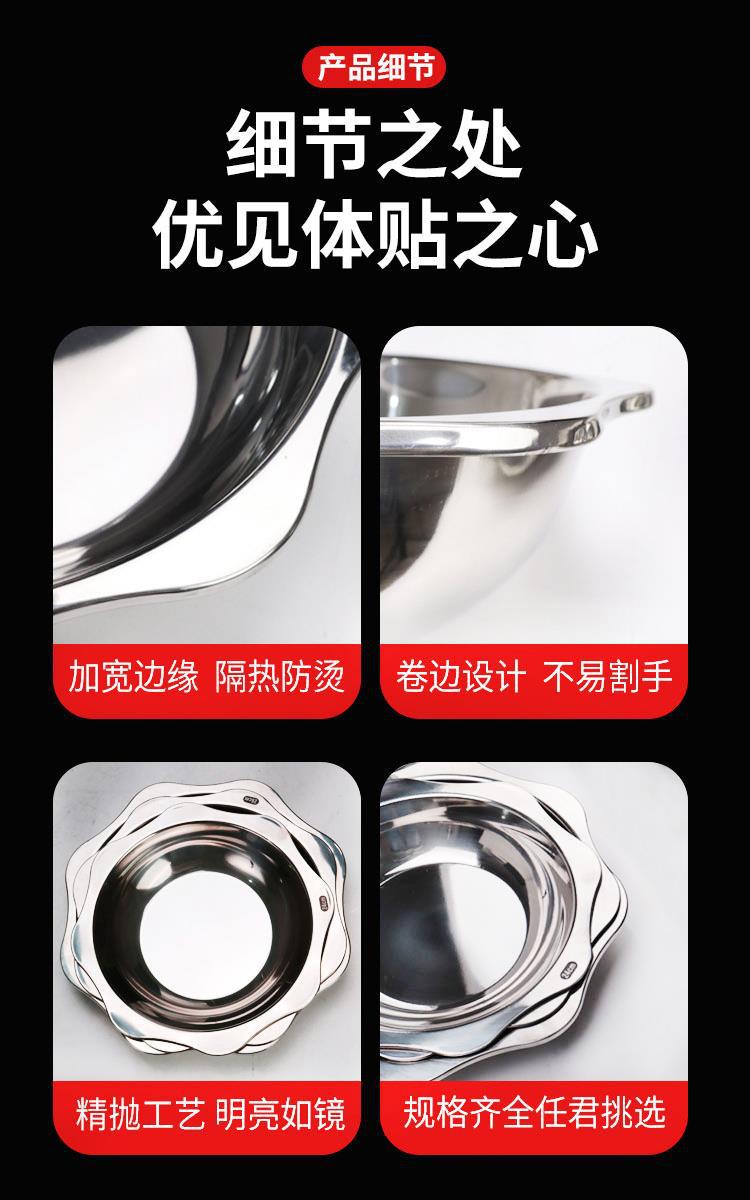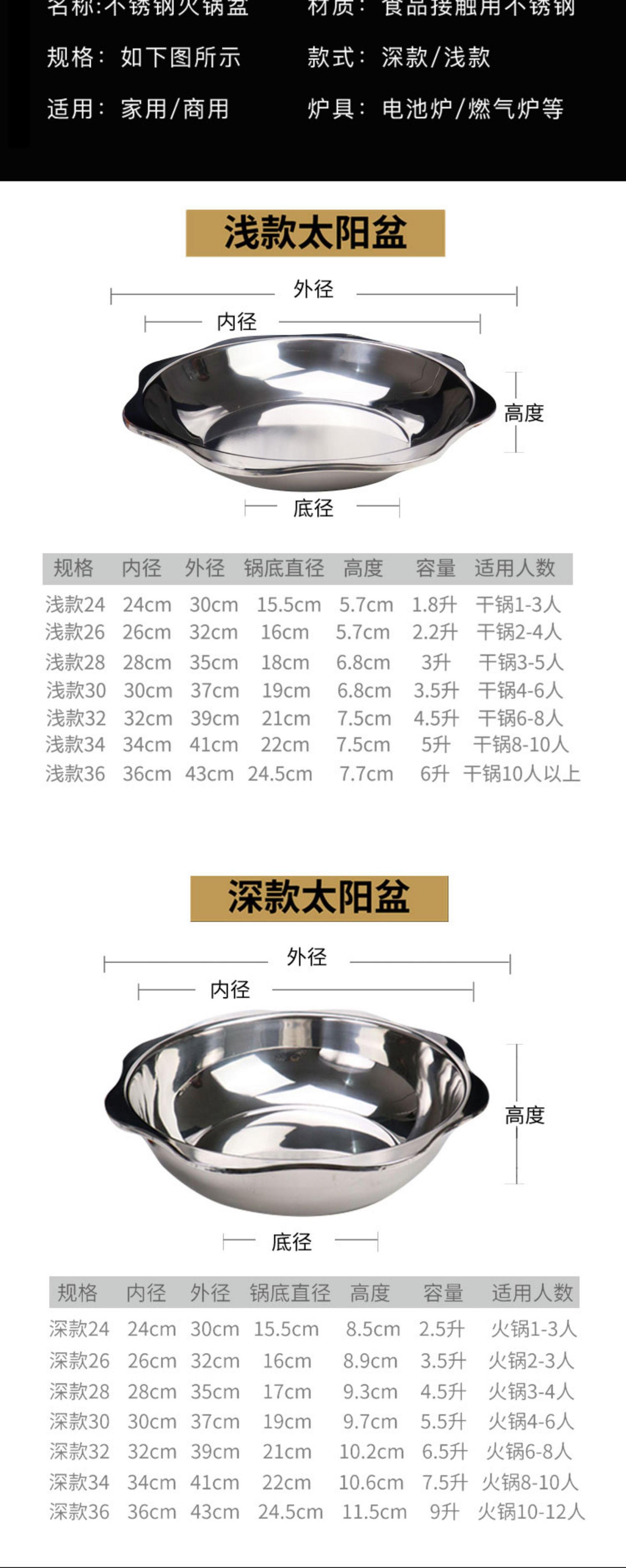 不锈钢火锅盆商用电磁炉饭店专用太阳盆八角清汤盆酸菜鱼家用涮锅