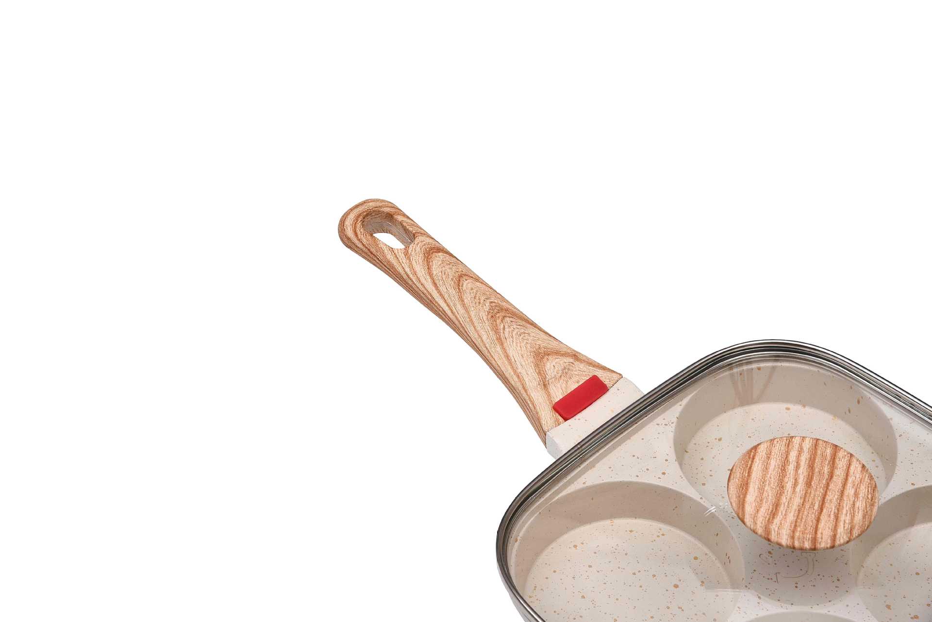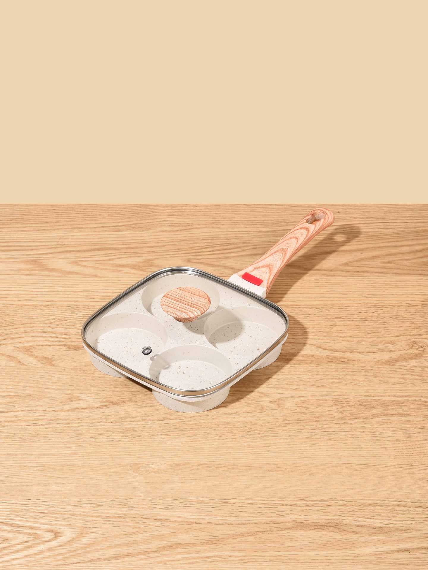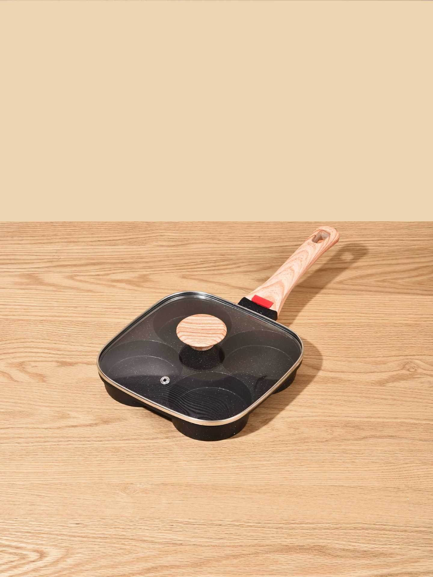 亚马逊新品带盖四孔煎蛋锅不粘家用早餐锅麦饭石平底煎锅跨境专供