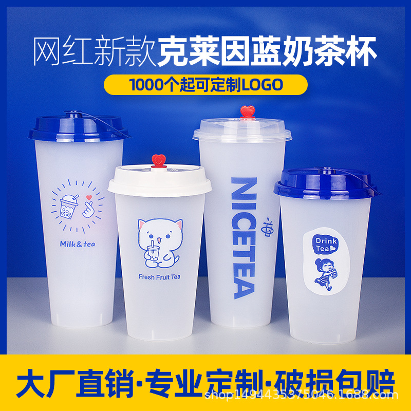 90口径を厚くする500/700mlクラインブルーベアシリーズ使い捨てフロスト射出成形カップミルクティーカップ