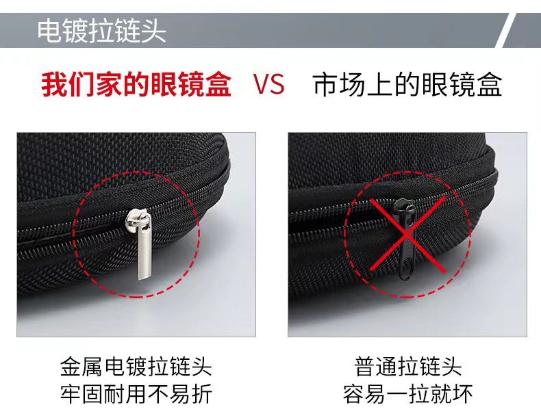 拉链盒太阳镜墨镜盒便携简约防压eva黑色挂钩收纳盒印字logo镜盒