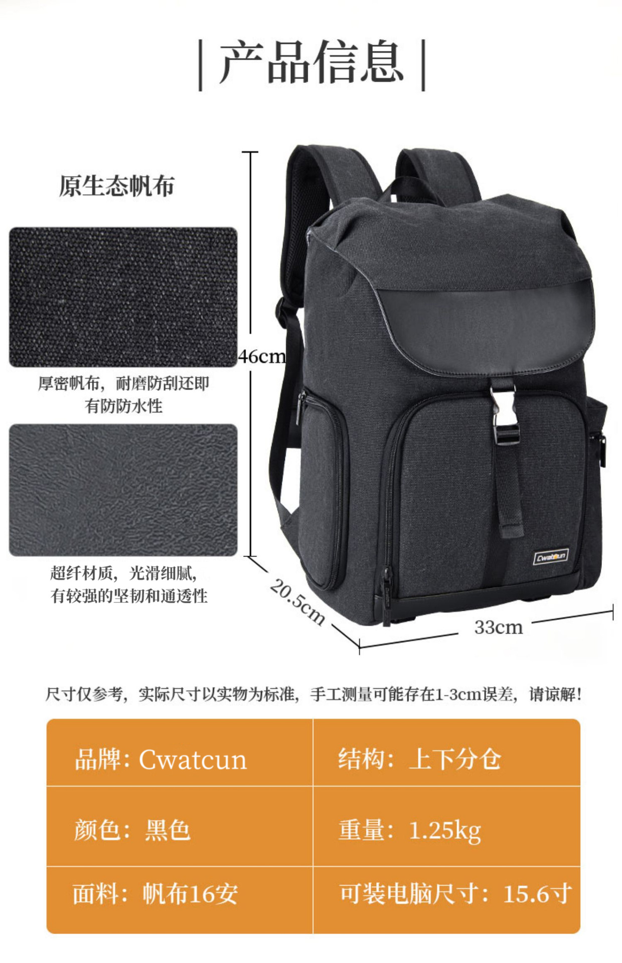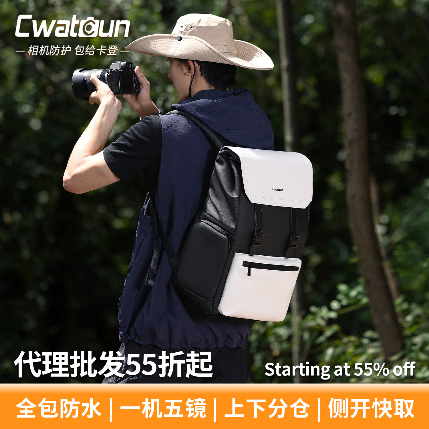 Cwatcun 香港製カジュアルカメラバックパック 日常通勤用リュックサック 1台5レンズ対応 防水カメラバッグ