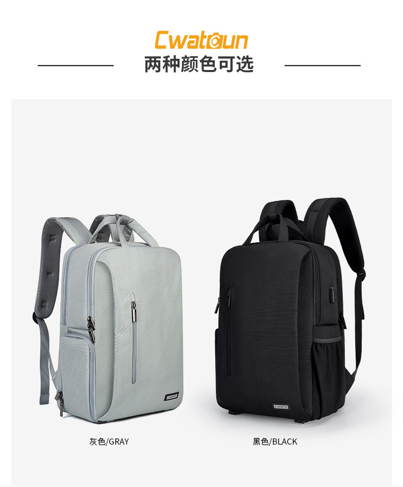 Cwatcun 香港製カジュアルカメラバックパック 日常通勤用リュックサック 1台5レンズ対応 防水カメラバッグ