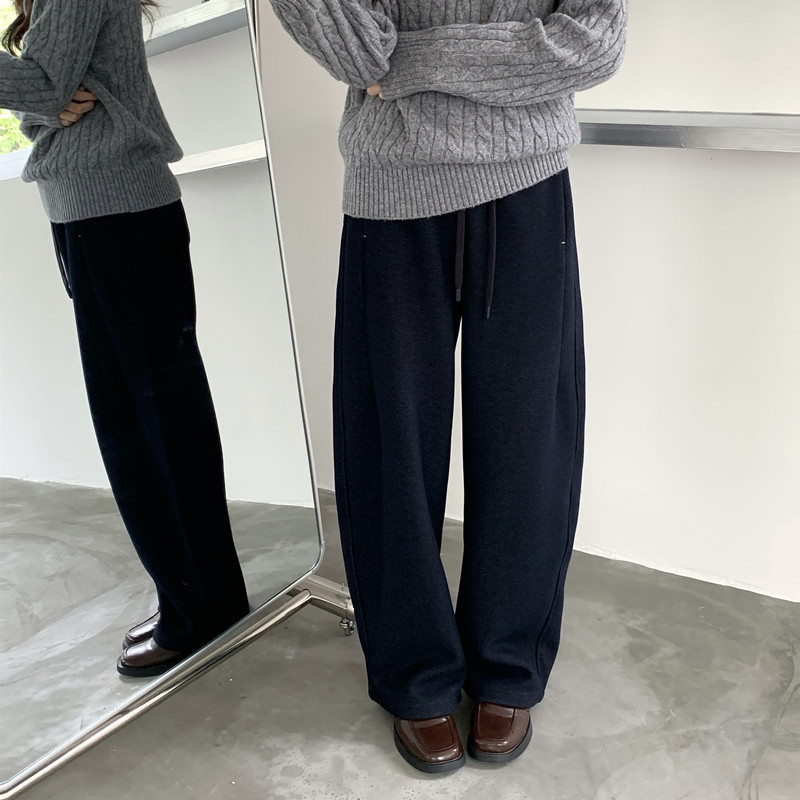 裏起毛厚手スウェットパンツ レディース 2025秋冬 ドレープ感のあるストレートレッグ 足首に紐付き 2WAY ゆったりワイドレッグ カジュアルロングパンツ