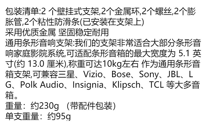 汎用型ブラケットはサムスン/ソニー/Lg長条形エコー壁家庭映画館スピーカー部品ブラケットに適用されます。