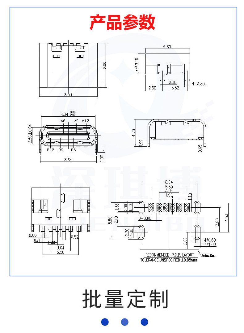 ソースメーカーのタイプCメスソケット16Pボード、フロントプラグとリアステッカー、3モードカスタマイズされたタイプCメスソケットインターフェース
