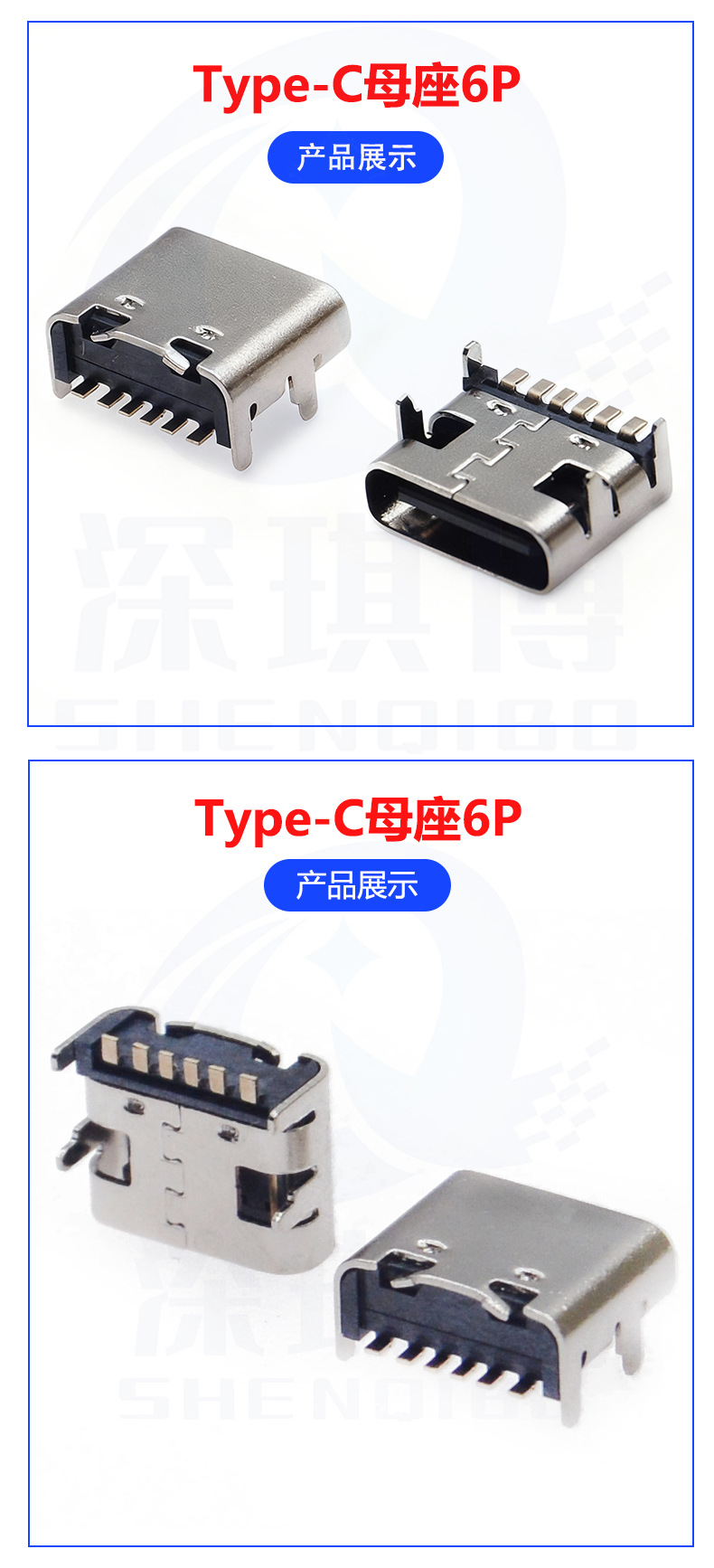 Type-c母座6pパッチusb3.1正逆プラグ母頭4脚直挿大電流速充編簡易付き