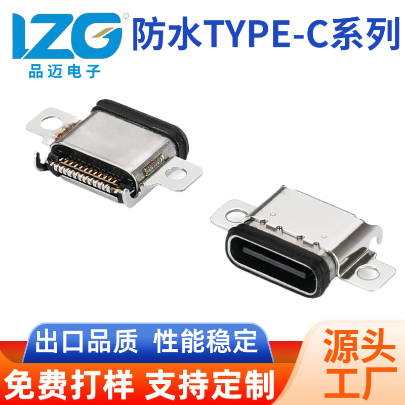 24P卧贴TYPE-C防水母座 卧式SMT双耳防水充电接口3A防水type-c24p