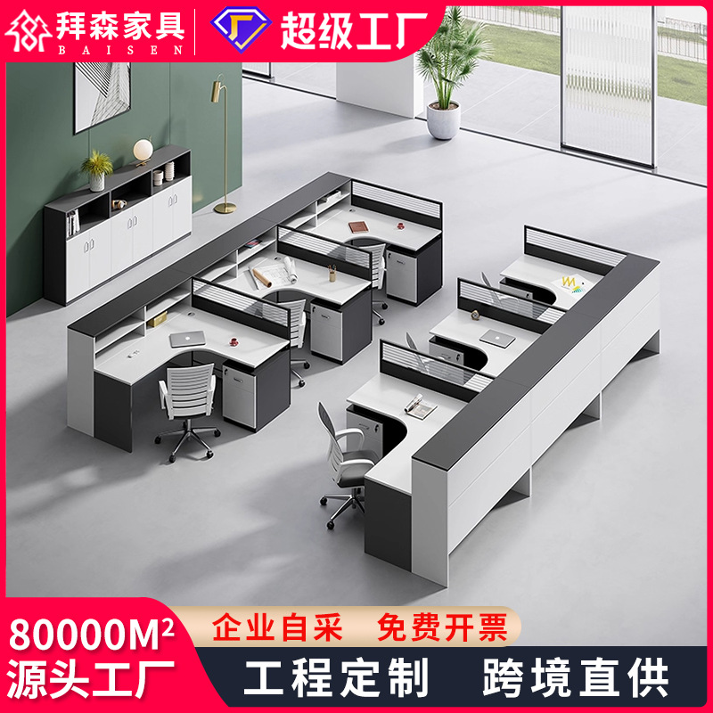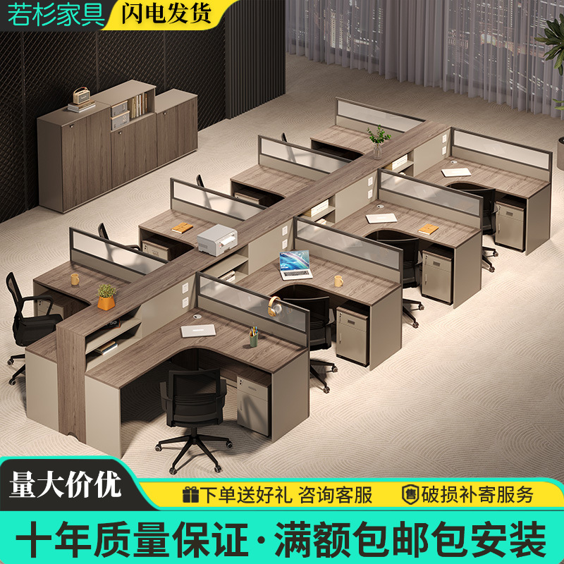 6人位职员屏风办公桌椅组合简约现代办公室员工位卡座4人位办公桌