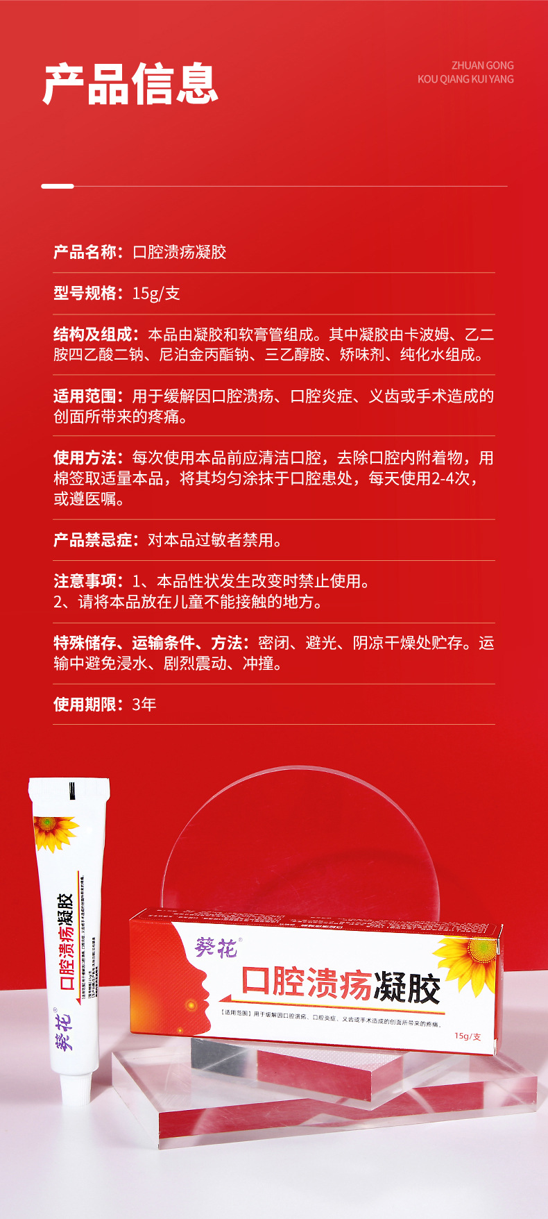 ひまわり口腔潰瘍ジェル、口腔ケア液、抗炎症、歯茎の腫れと痛み、口腔潰瘍パッチ、医療機器