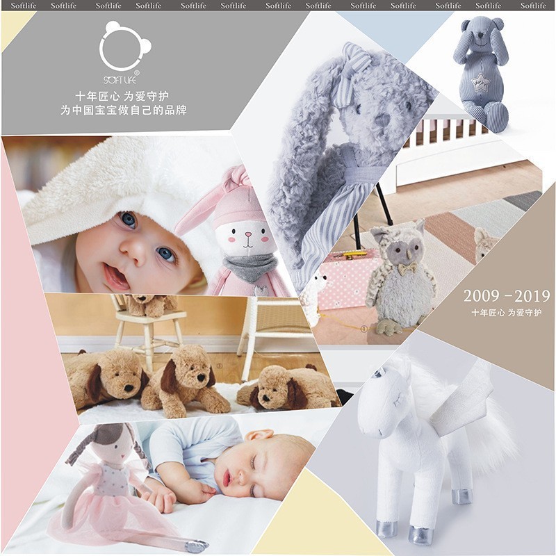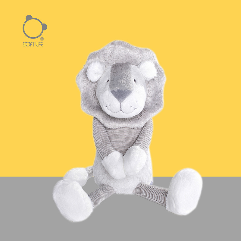 Softlife灰色のライオンのぬいぐるみの子供は人形の赤ちゃんをなだめて誕生日プレゼントを一緒に寝ます。