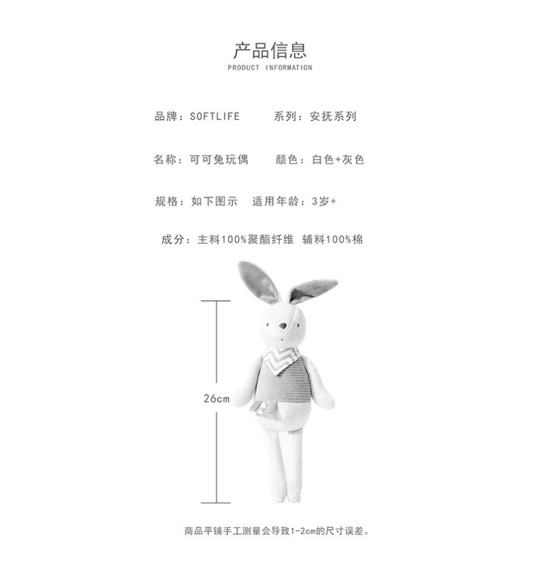 ソフトライフ ホワイトラビットぬいぐるみ 女の子用癒し系人形 赤ちゃん誕生日プレゼント 短毛ぬいぐるみ 卸売