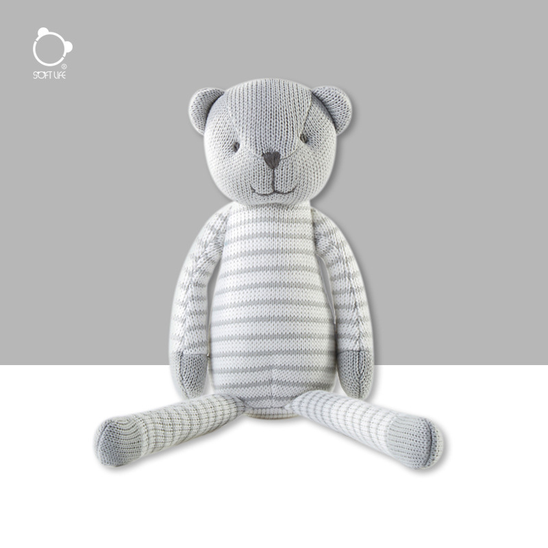ソフトライフストライプベア人形グレーウール布人形ベビーなだめるぬいぐるみ子供の誕生日ギフト