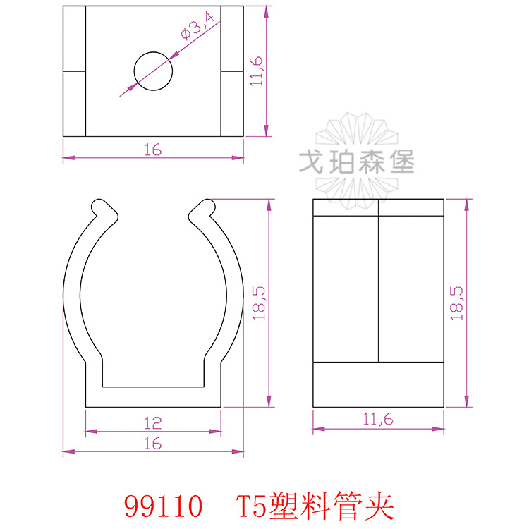 99110 T5塑料管夹 透明/乳白 PC ¥0.13 1000个
