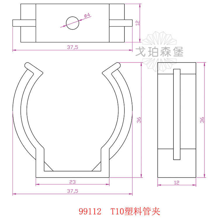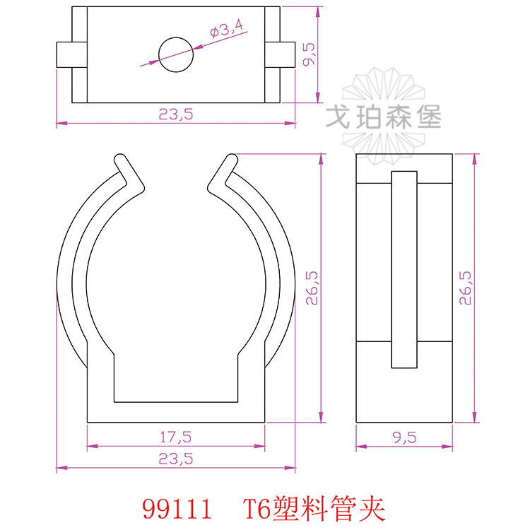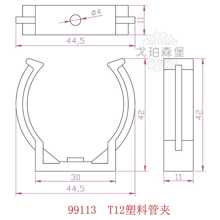 99111 T6塑料管夹 透明/乳白 PC ¥0.14 1000个