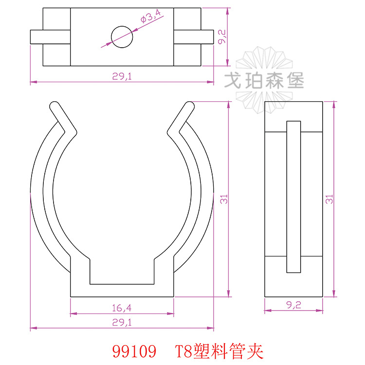 99109 T8塑料管夹 透明/乳白 PC ¥0.16 1000个
