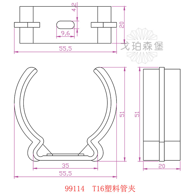 99114 T16塑料管夹 透明 PC ¥0.55 200个
