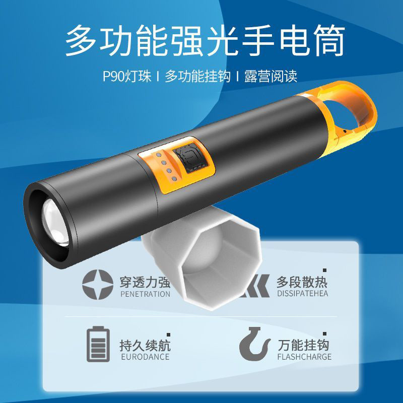 メーカー直販懐中電灯led屋外緊急充電ズーム多機能アルミニウム合金家庭用強光懐中電灯