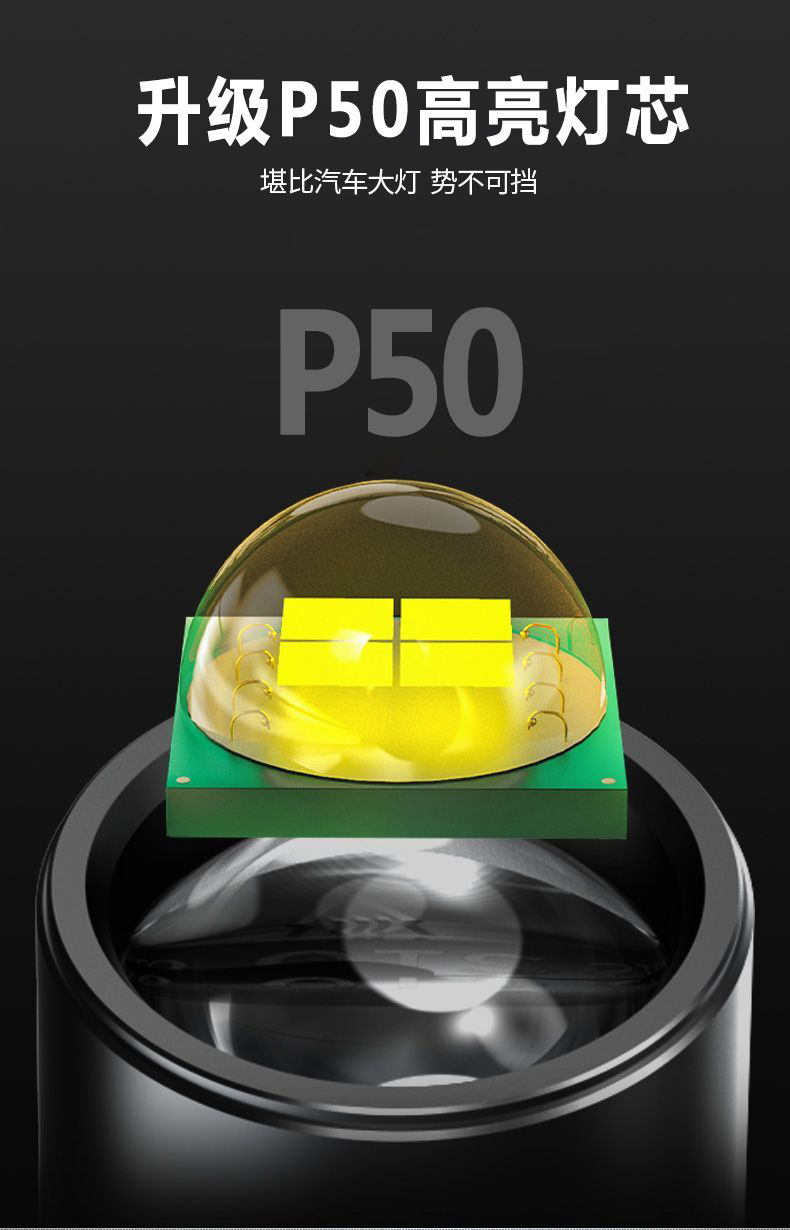 国境を越えた多機能キャンプ灯屋外遠射緊急充電可能な宝白レーザーp50強光懐中電灯