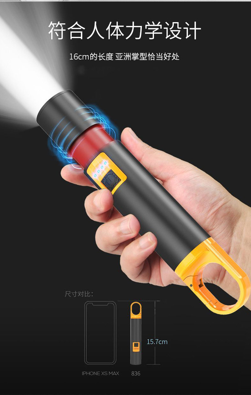 クロスボーダー手持ちライト屋外led手持ち懐中電灯スタンドライトハイパワー防水usb充電強い光サーチライト