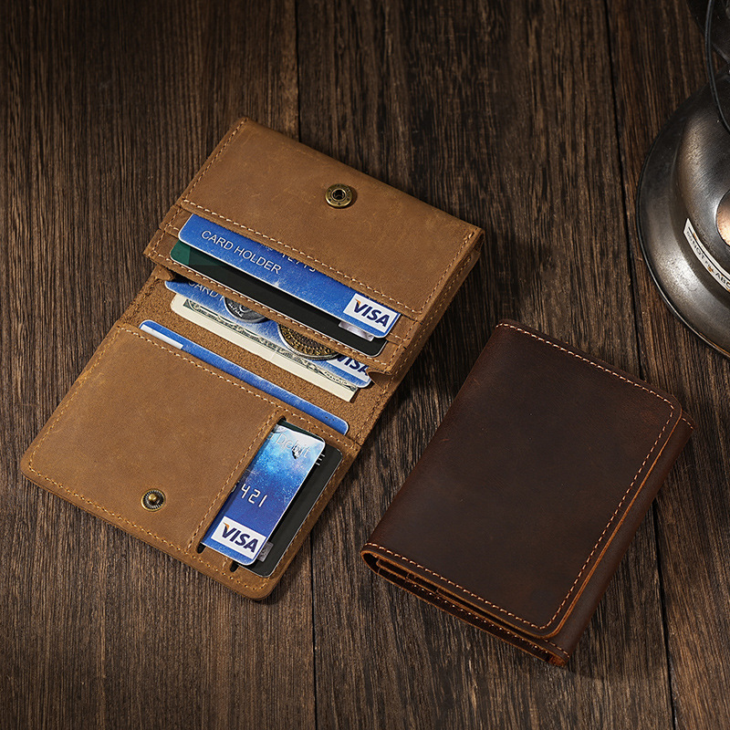 疯马皮二折钱包高档手工真皮男士皮夹薄款便携出行零钱包真皮卡夹