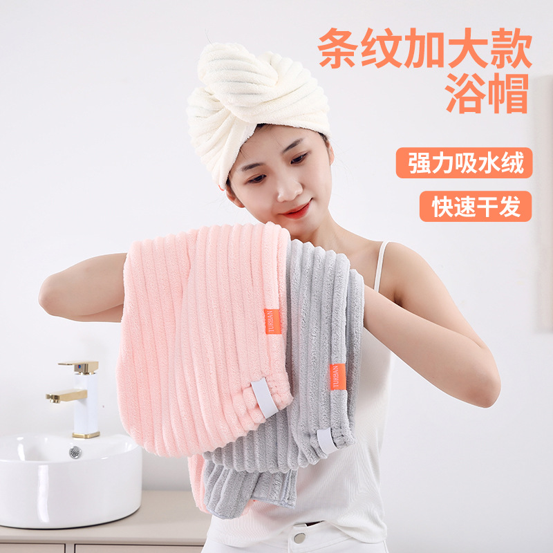 ストライプの大きいサイズのドライヘアキャップの女性コーラルベルベットの吸水速乾高颜値の女性シャワーキャップのスカーフを厚くしたドライヘアタオル