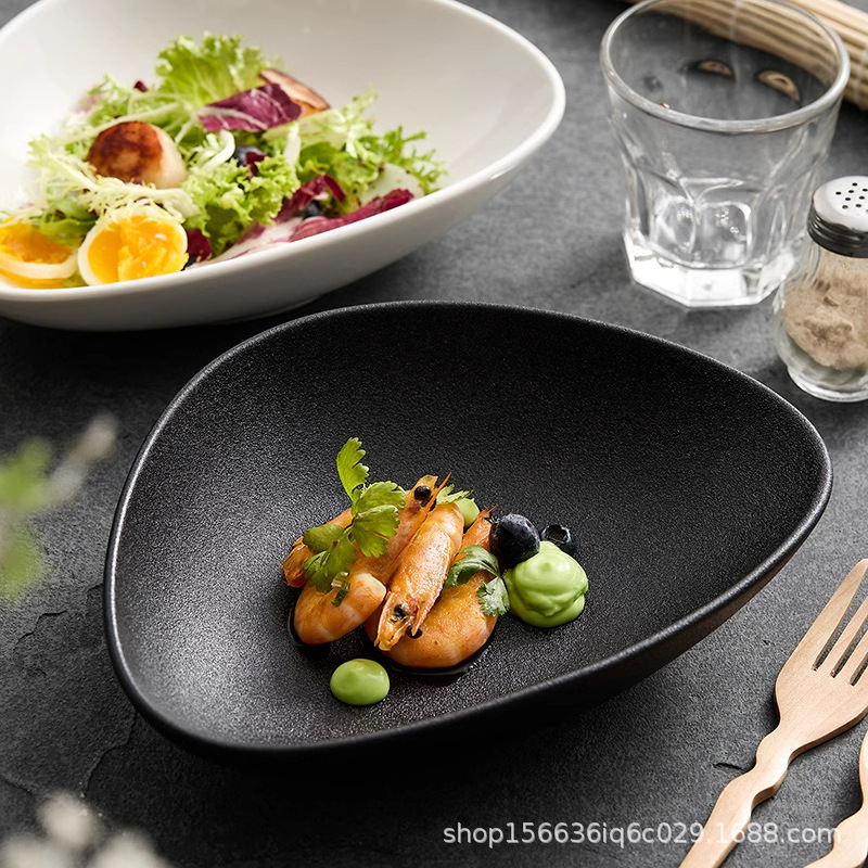 クリエイティブ三角セラミックフルーツサラダ家庭用食器日本式どんぶりディナープレートins風料理プレートデザート深皿