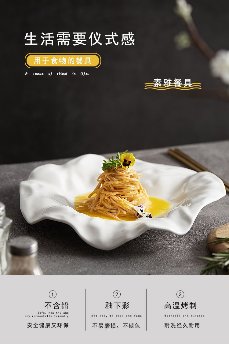 ホテルレストランホテルクラブハウス食器皿純白高級感洋食皿ステーキ皿パスタ皿陶磁器料理皿
