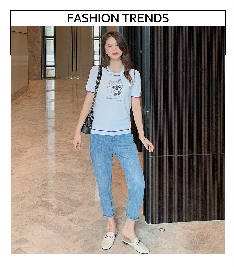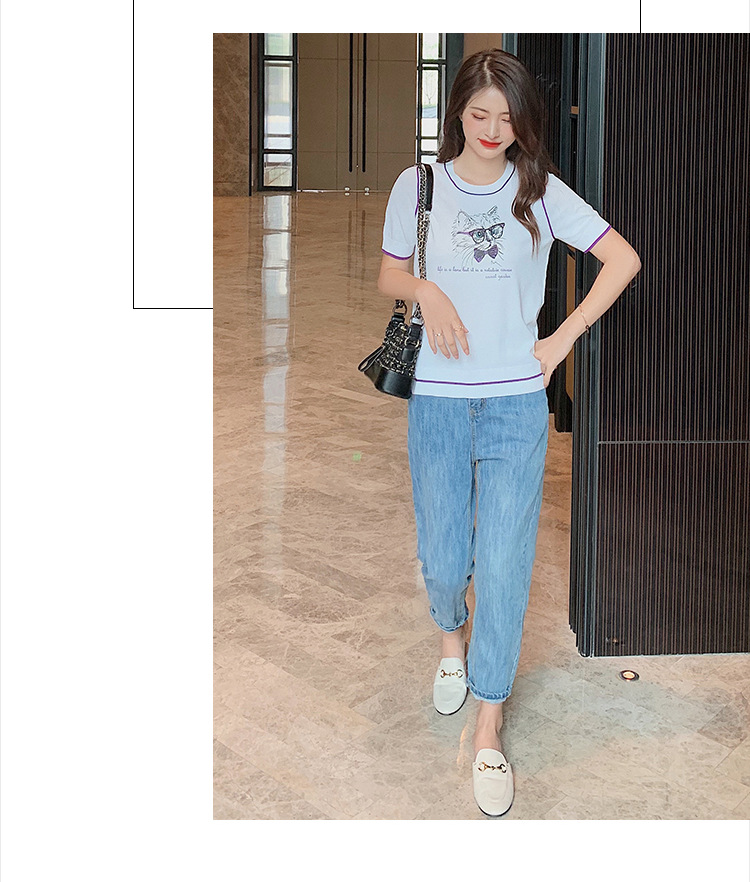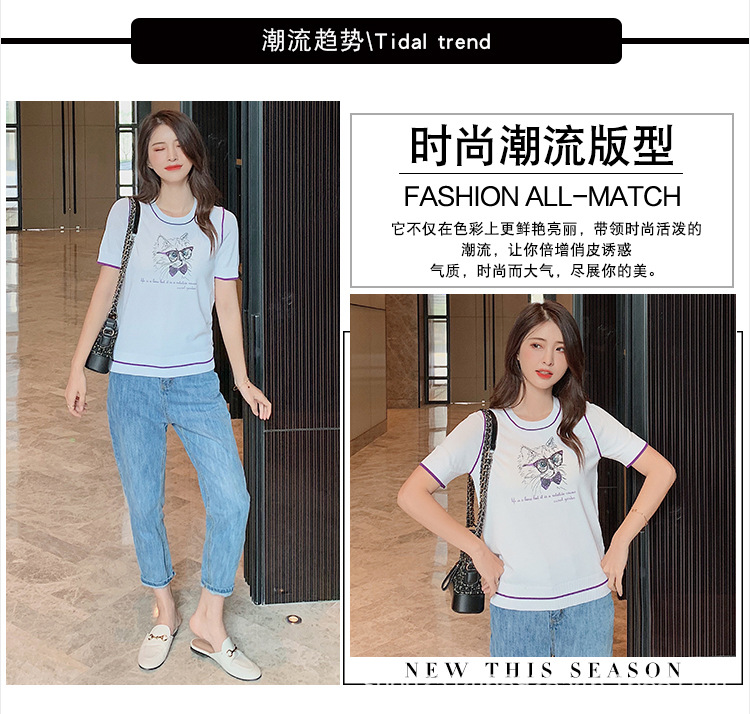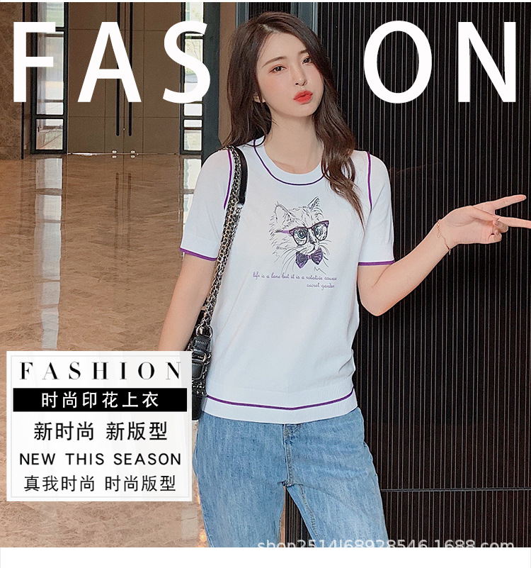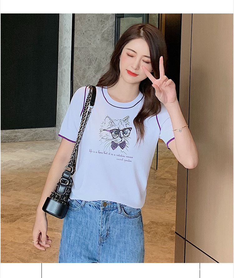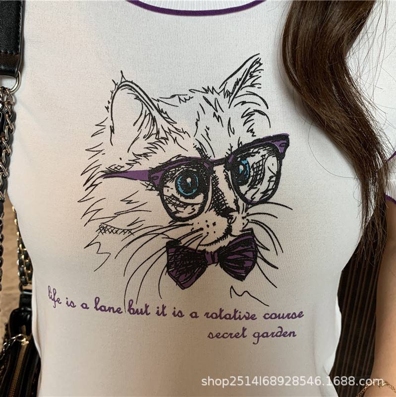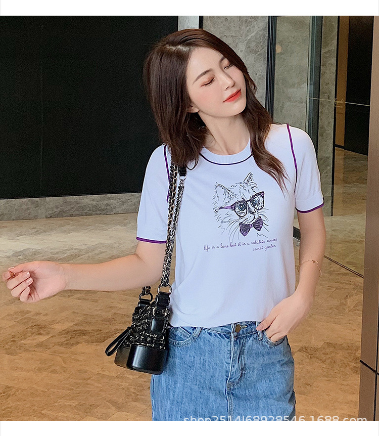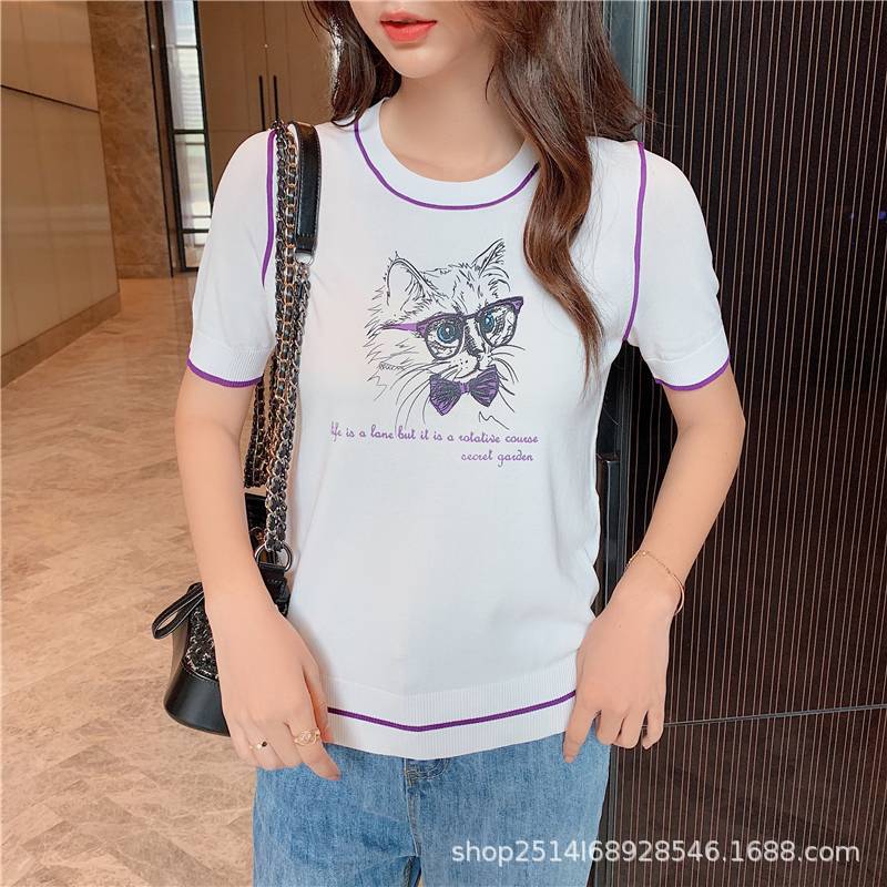Ge's の新しい 2024 夏スリムフィットアイスシルク猫ラウンドネック半袖 T シャツ年齢を減らすインナートップ