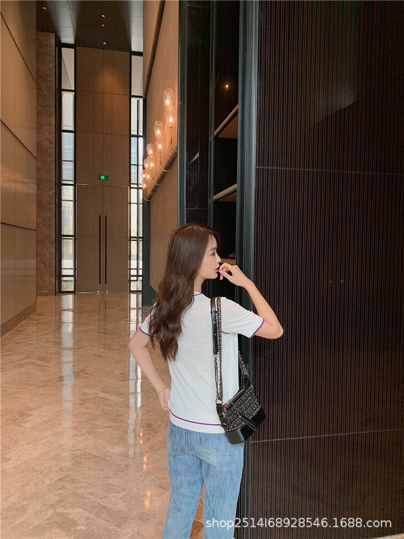 Gejiaショッピングモールの2024年夏新作Little Beeラウンドネックスリムフィット刺繍セーター半袖Tシャツトップ