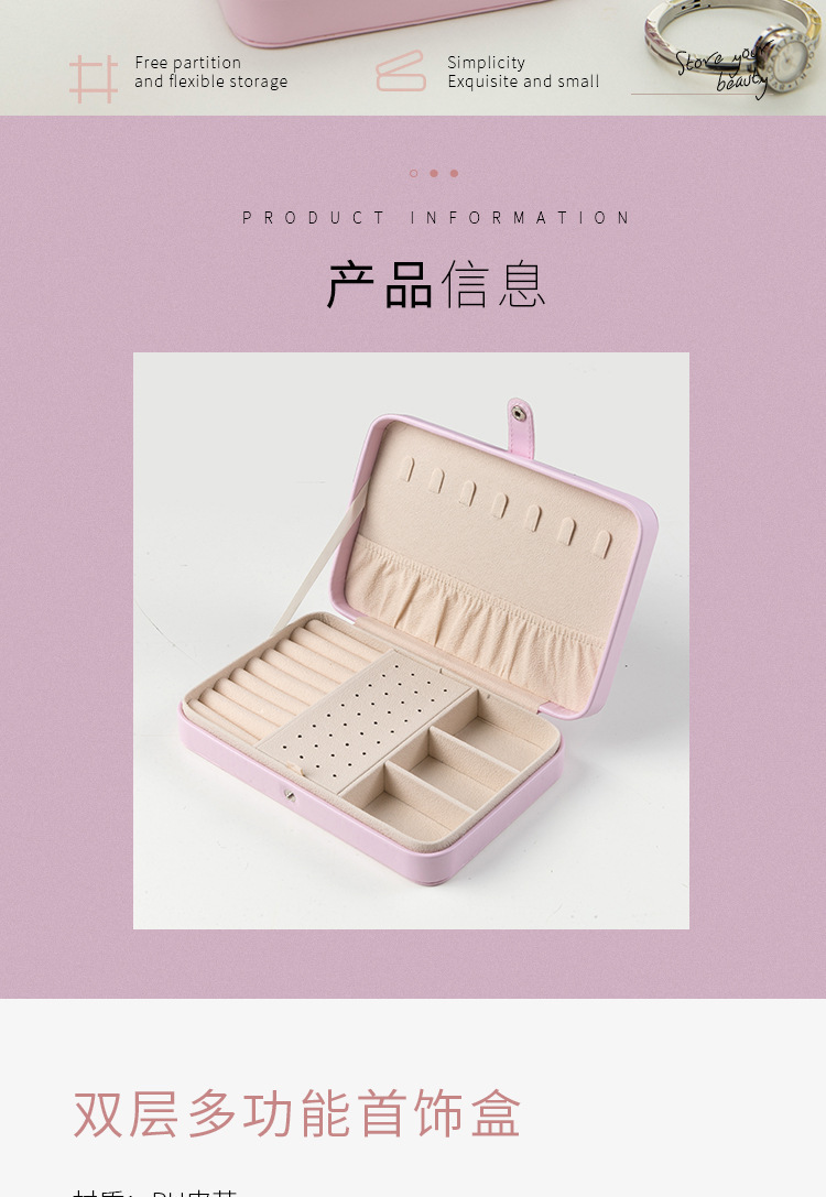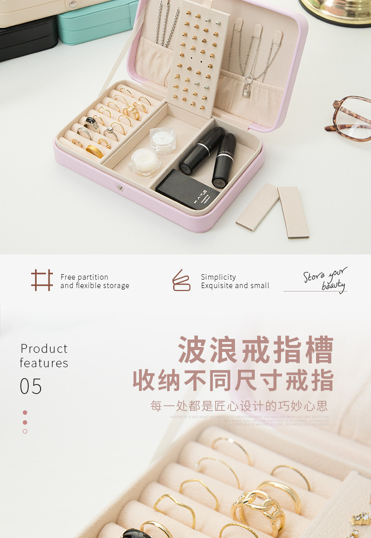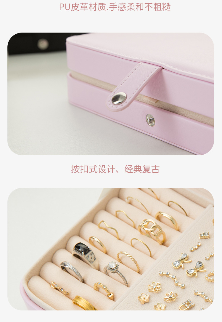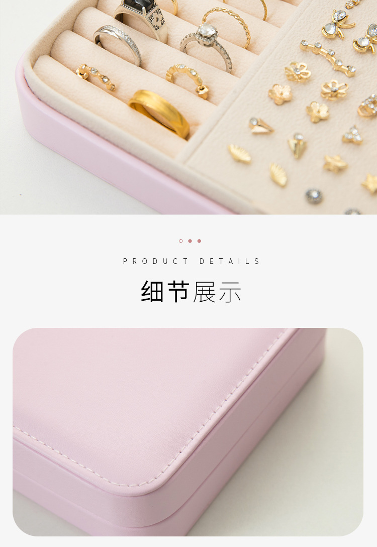旅行轻简防尘防刮皮革首饰盒 小巧随身珠宝盒 戒指耳钉口红收纳盒
