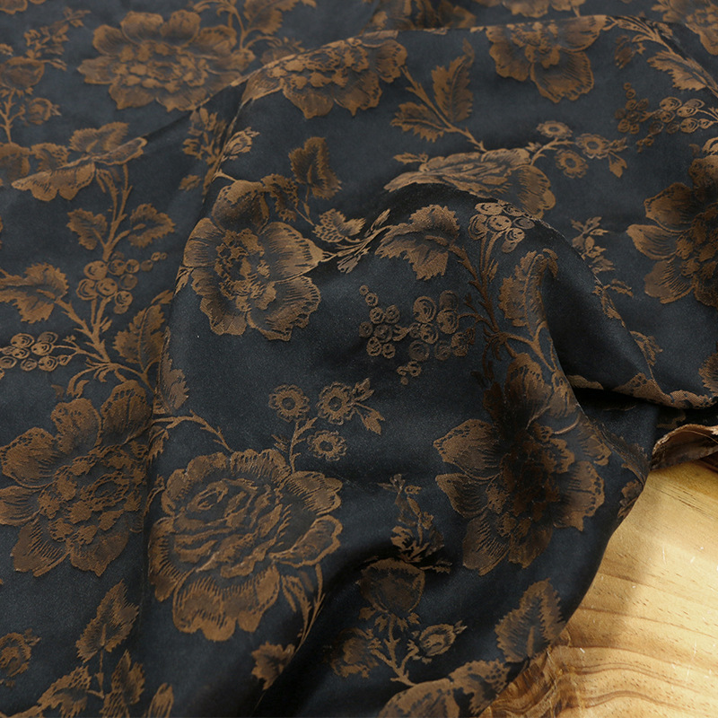 重缎提花桑波缎真丝布料非遗香云纱做旧感衣服鞋子手工DIY面料