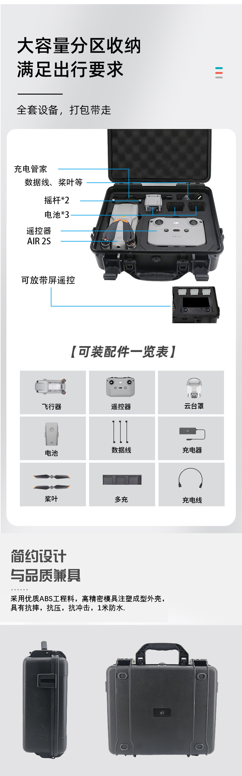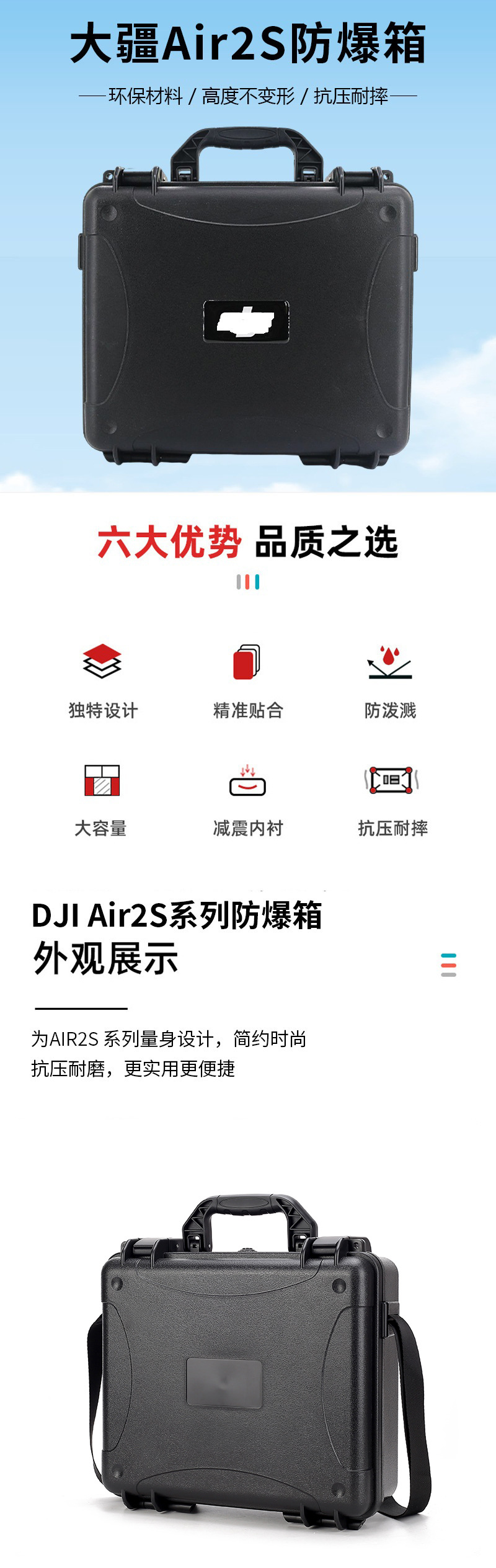 大疆dji air2s航空撮影器無人筐体小型防水耐震耐圧無人機携帯収納ボックス