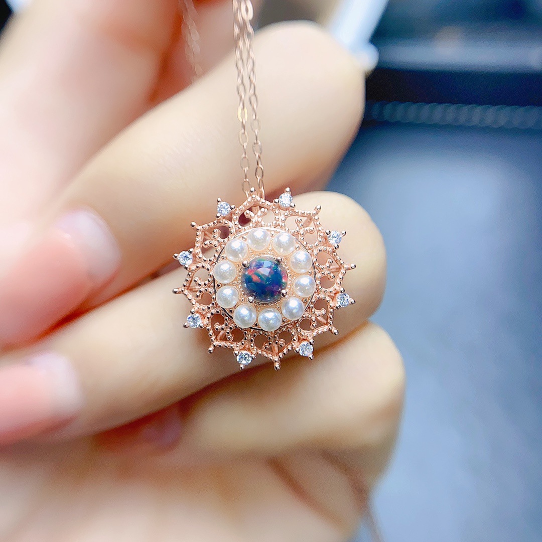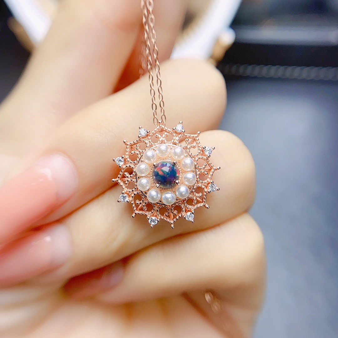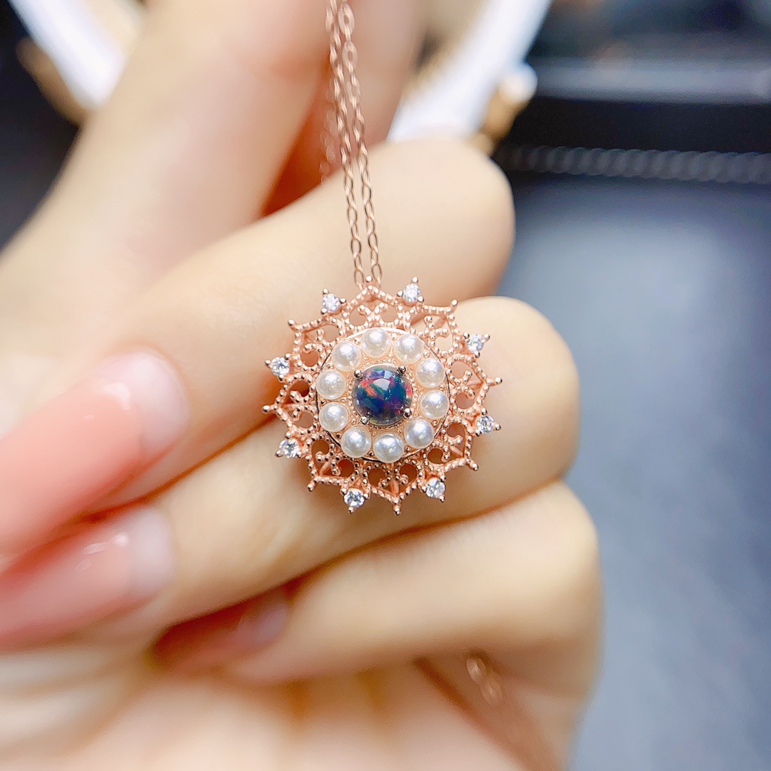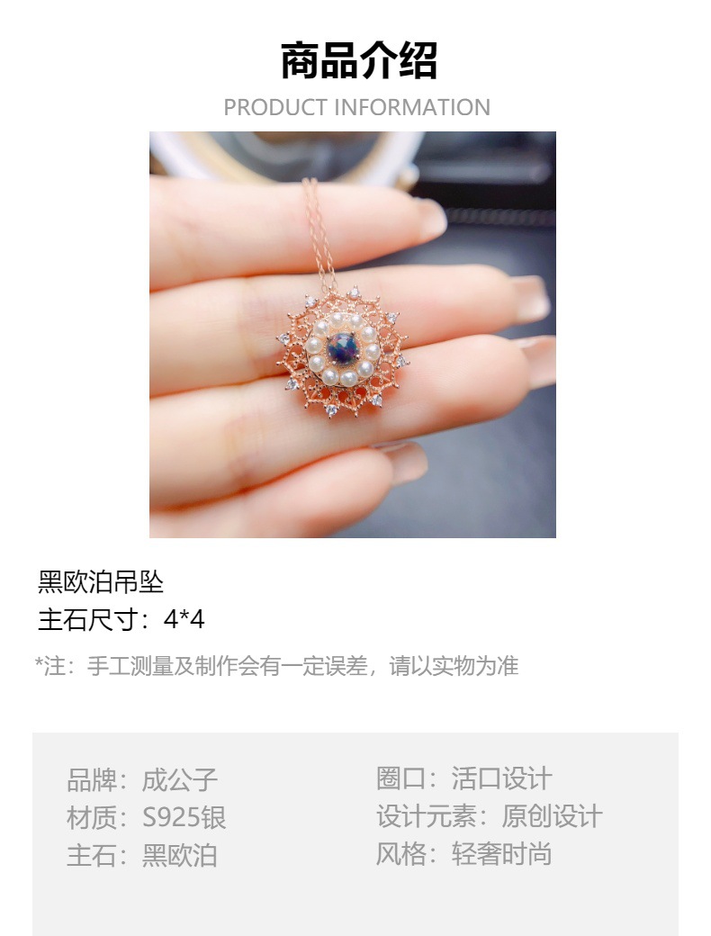 工場卸売り爆金天然黒欧泊ペンダントs925銀モザイク主石4*4人気欧米の世代