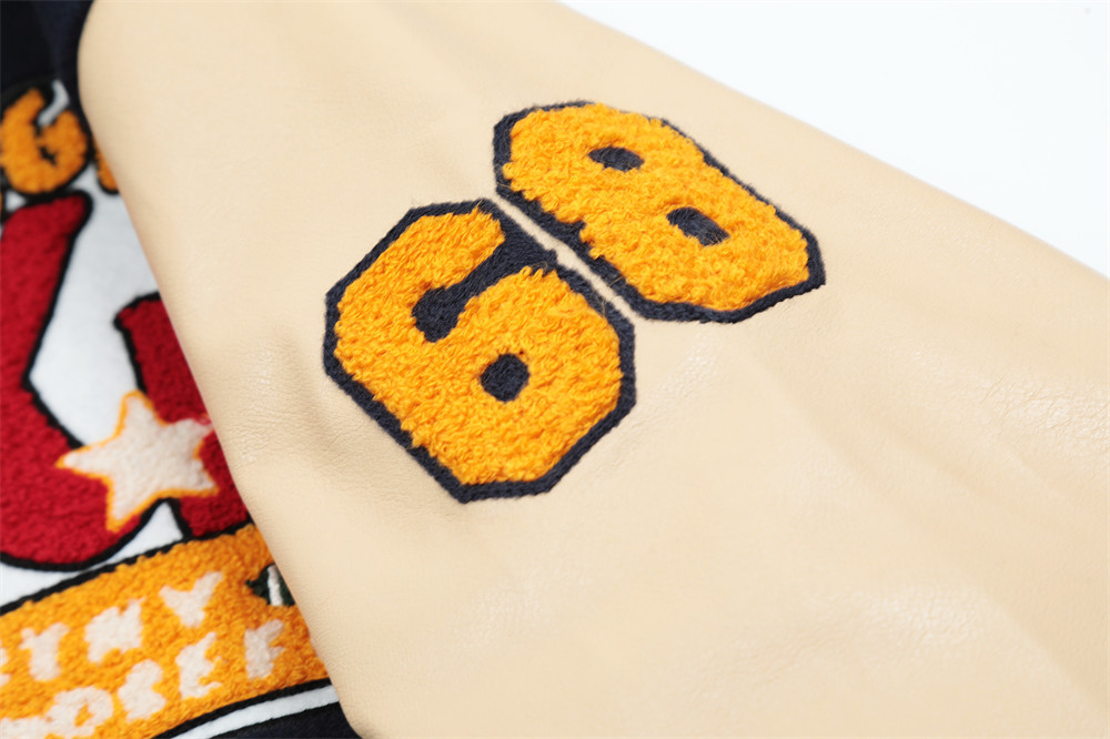 アメリカ街潮刺繍アルファベット野球服メンズinsゆるい長袖皮袖衝突色ジャケットカスタマイズ