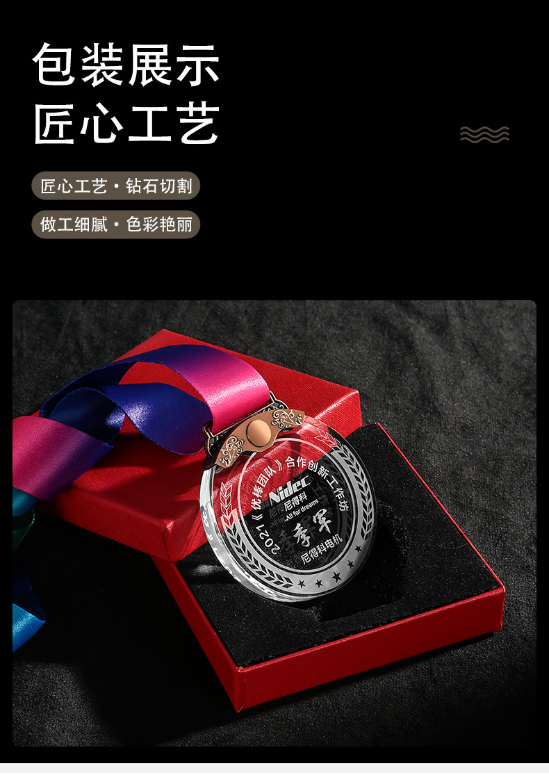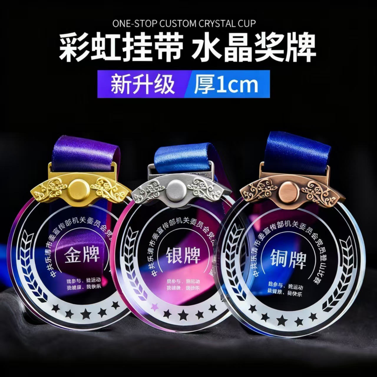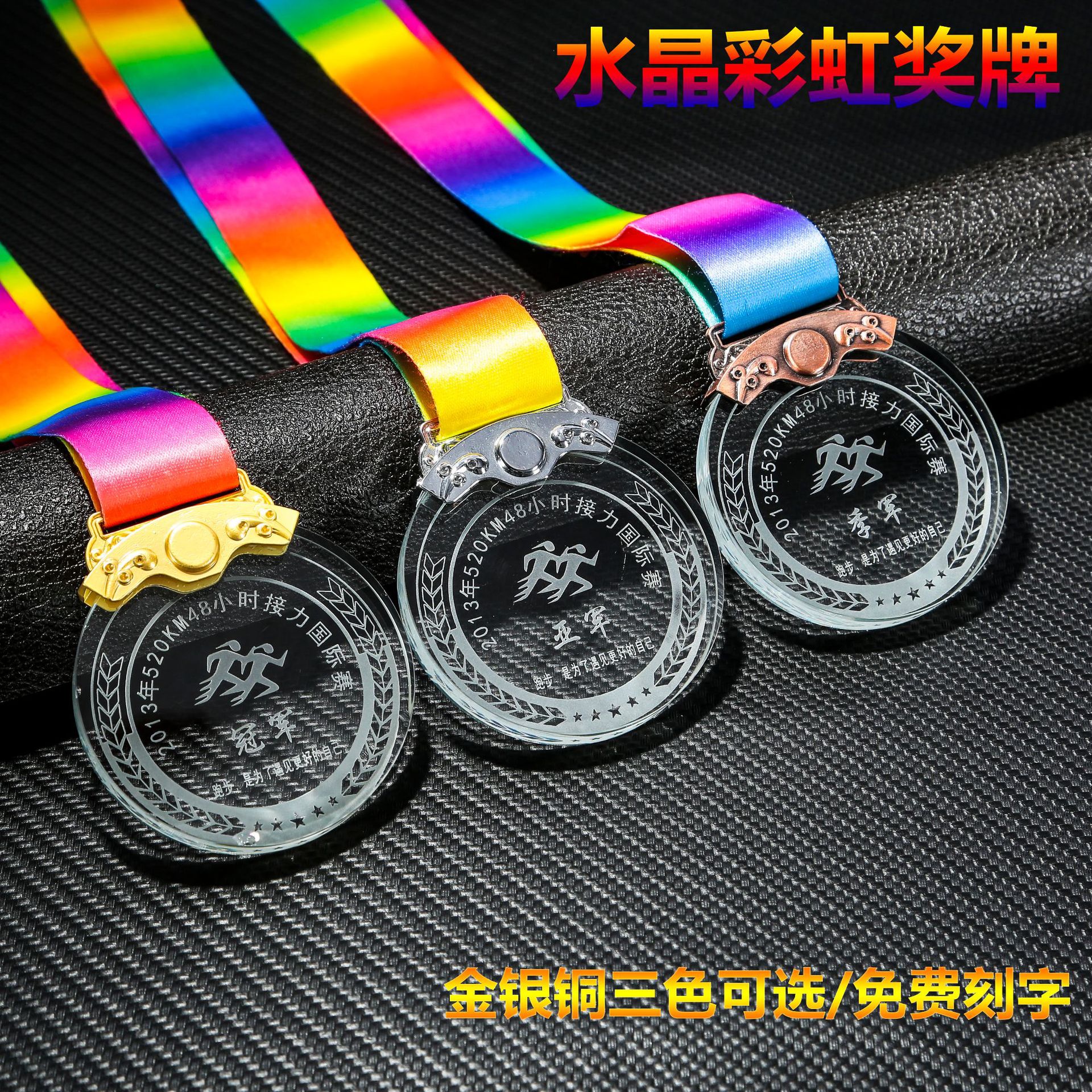 クリスタルカラープリントメダル制作クリエイティブ金メダル子供マラソン大会メダル栄誉記念メダル看板