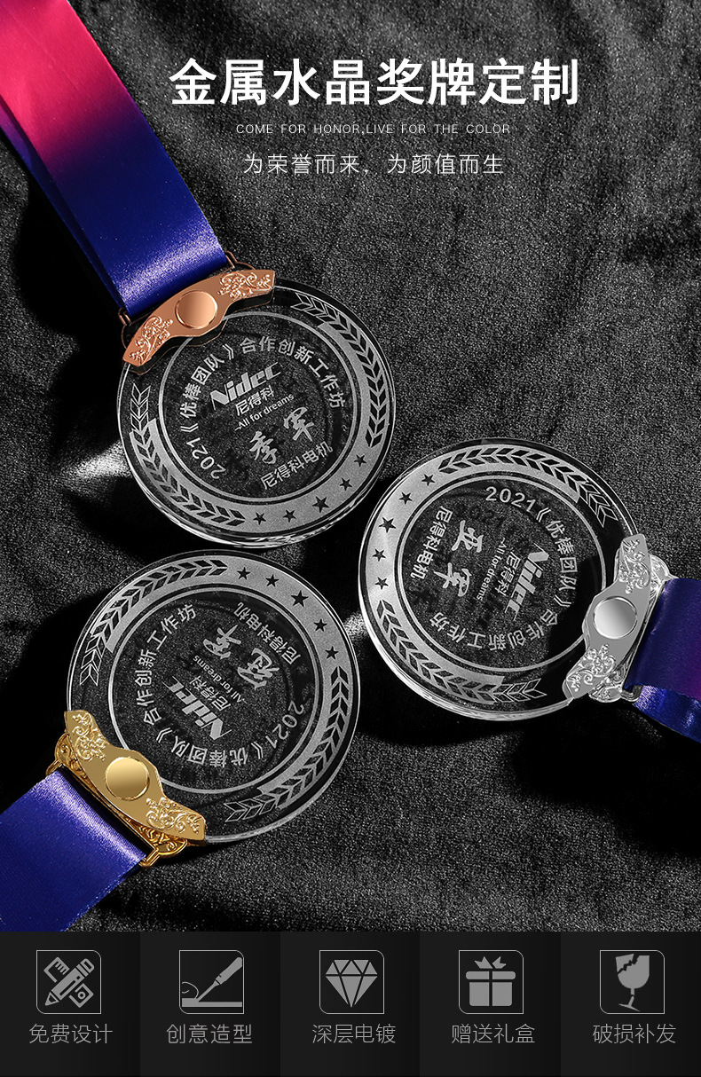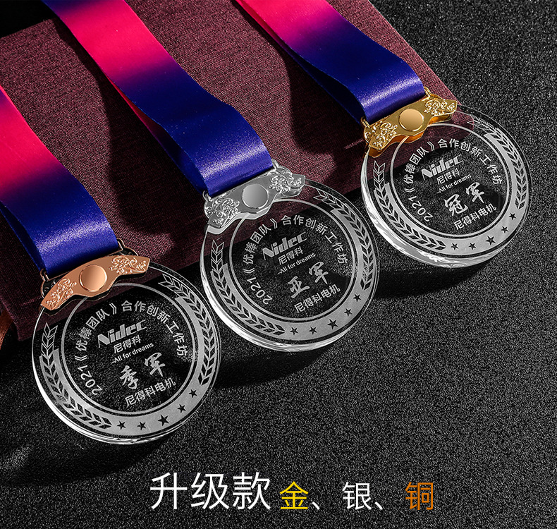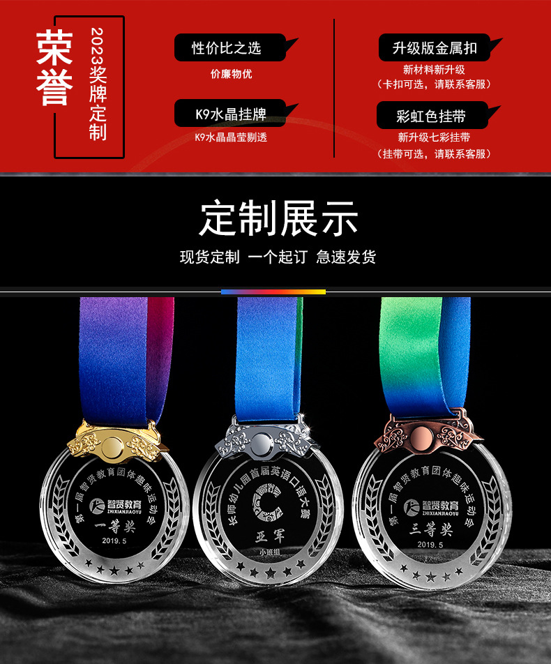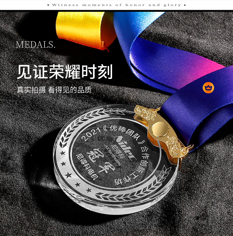 クリスタルカラープリントメダル制作クリエイティブ金メダル子供マラソン大会メダル栄誉記念メダル看板