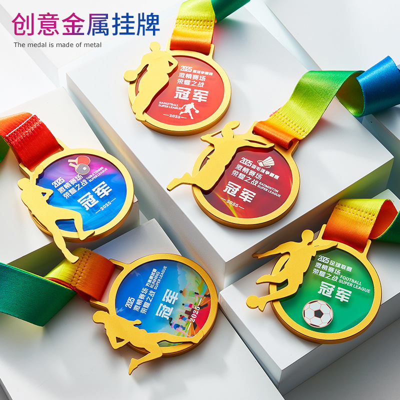スポーツ大会メダルランニングサッカーバスケットボール金銀銅メダル記念章冠亜季軍看板トロフィー