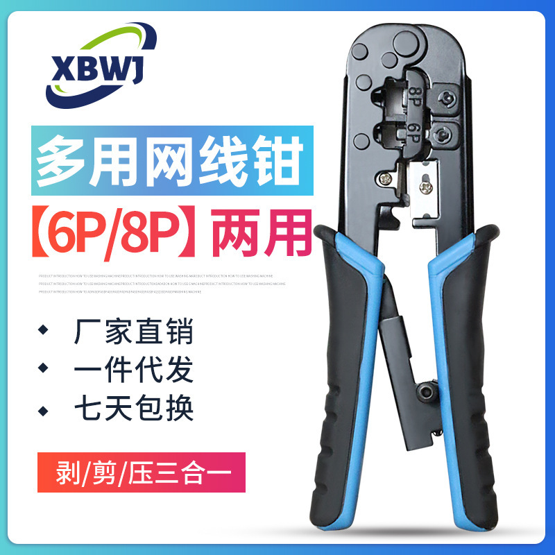 跨境专供6P8P网线钳 多功能通孔水晶头压接钳工具套包 网络钳