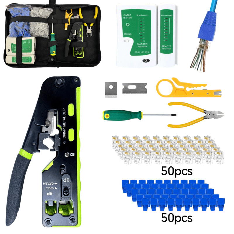 クロスボーダーネットワークプライヤープログレードRJ45スルーホール水晶ヘッドエンジニアリングネットワークテスターツール家庭用セット