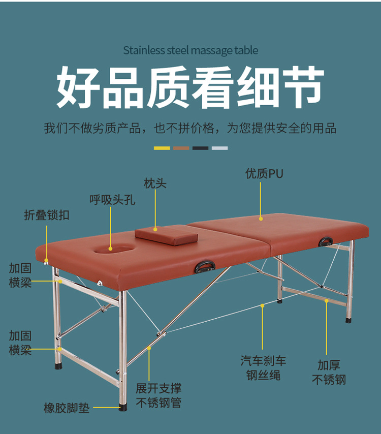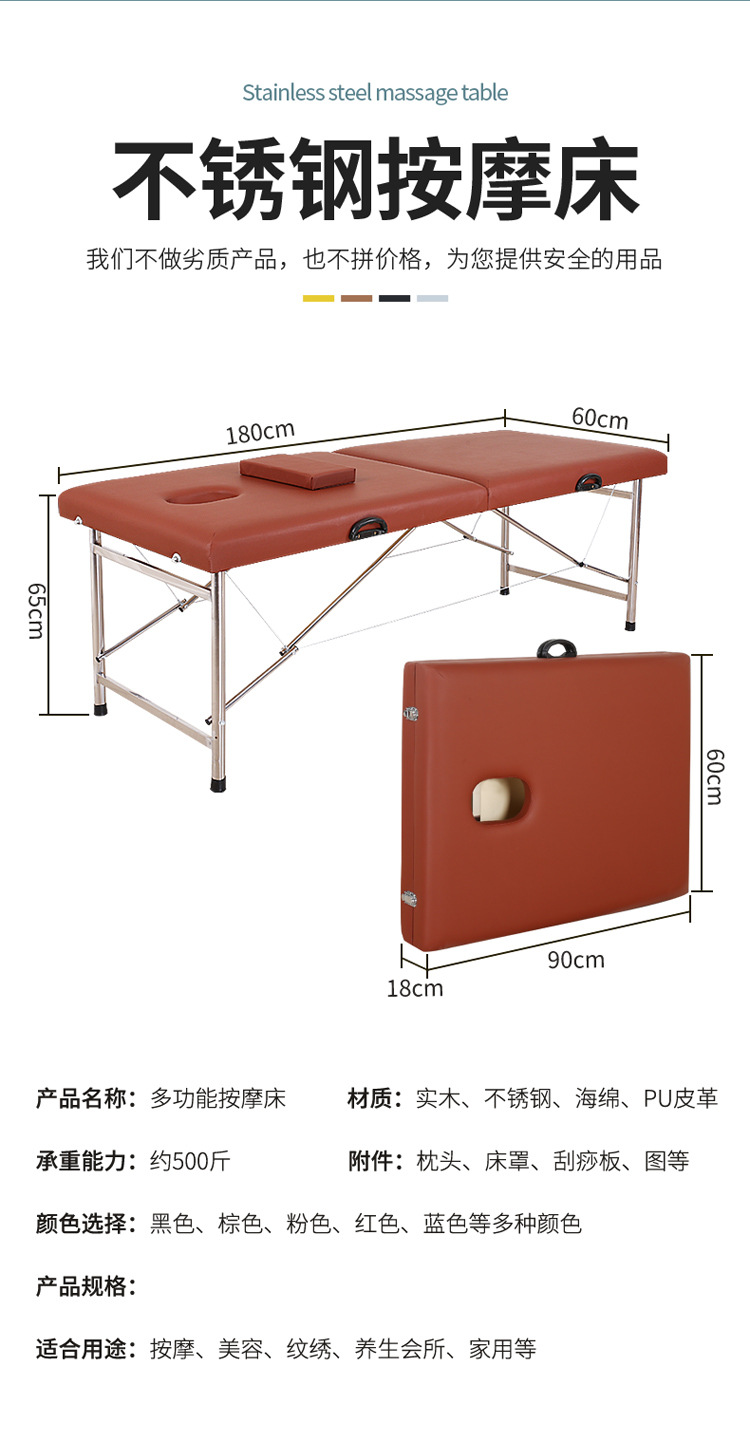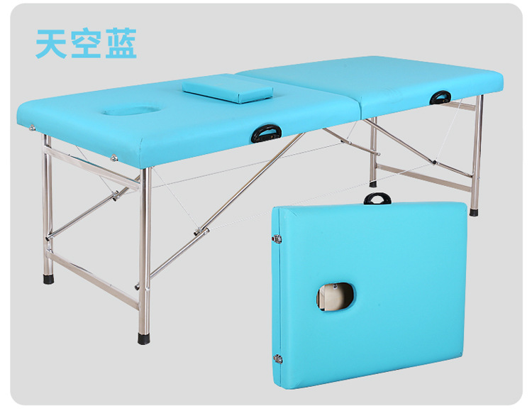 ステンレス鋼マッサージベッドメーカー卸売ポータブル平行棒強化ポータブル家庭用マッサージ折りたたみ美容ベッド