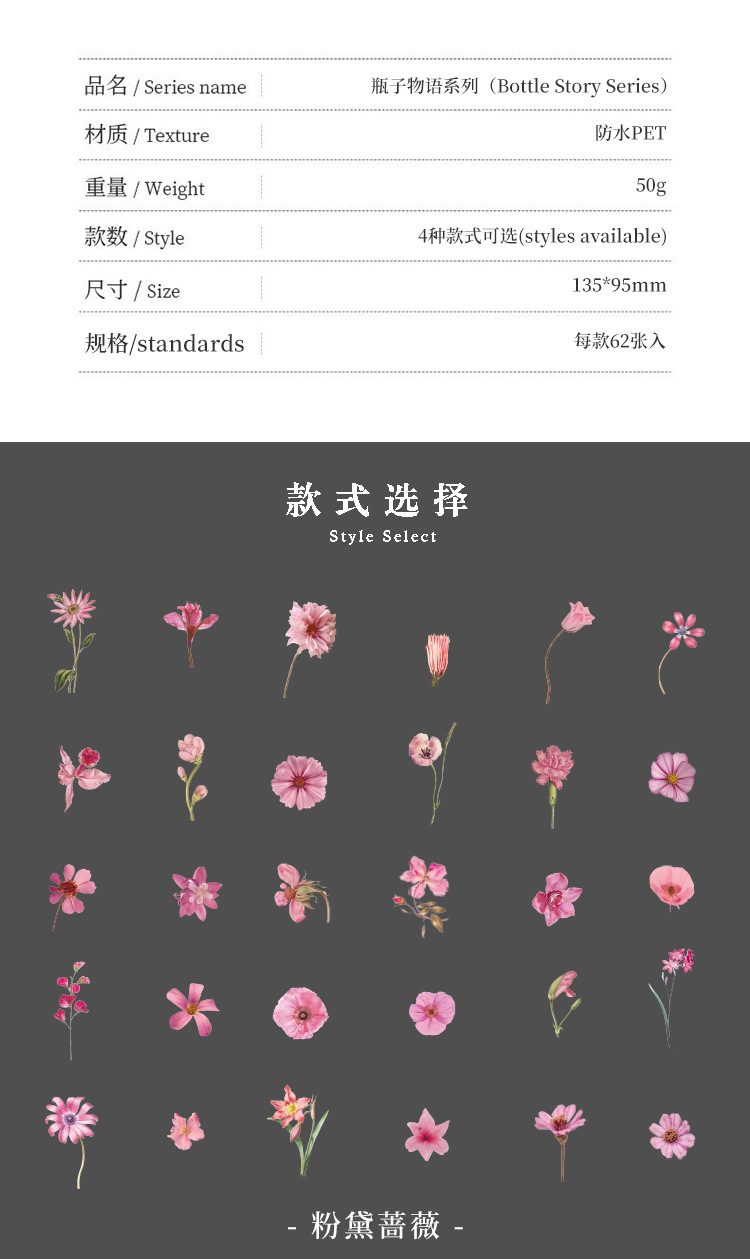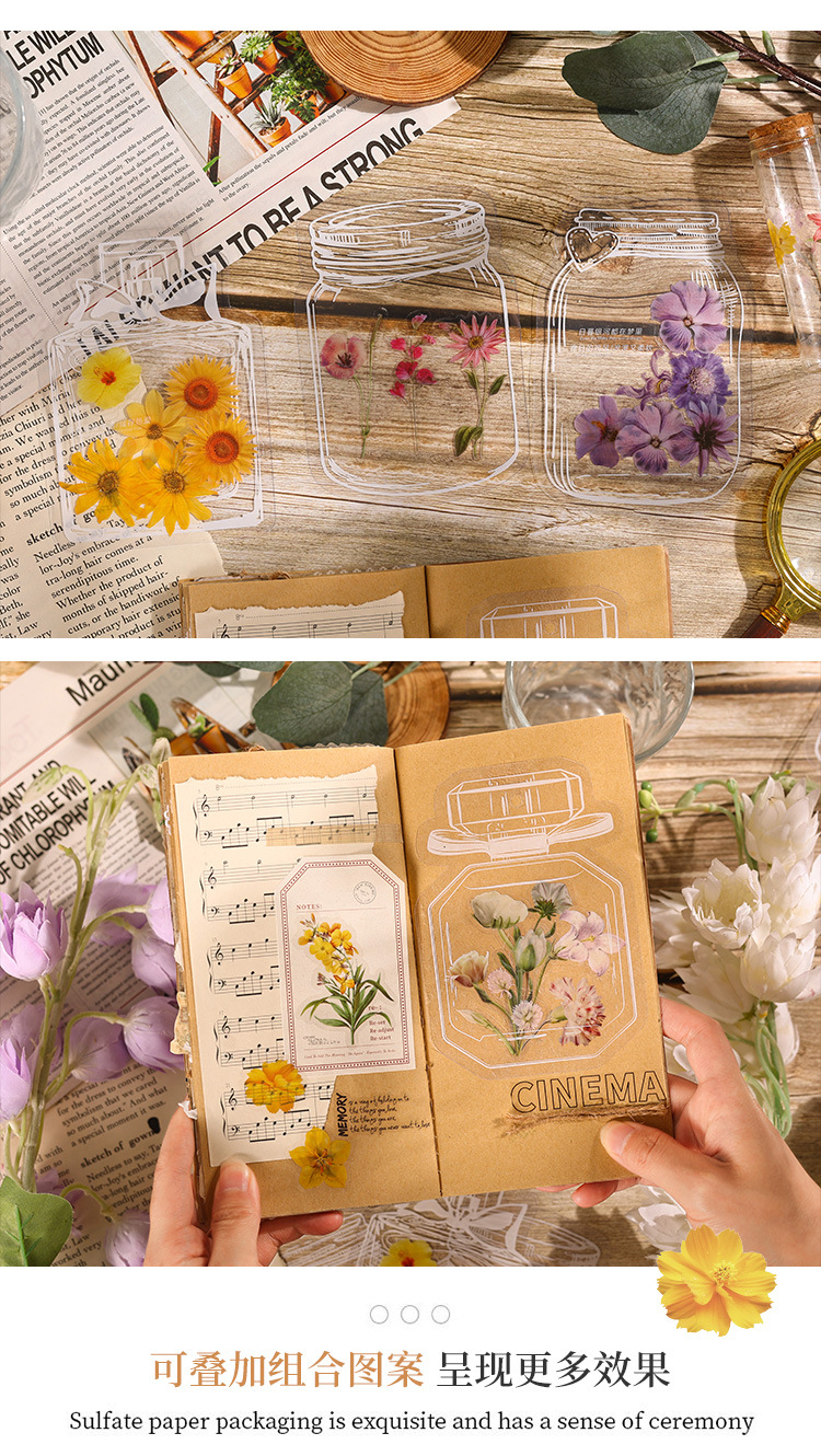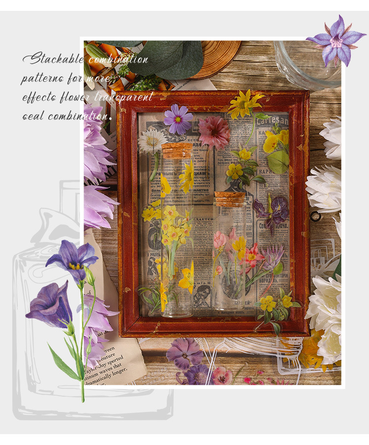 ボトル物语シリーズpet花植物透明手帐ステッカーバッグ手帳素材デコレーションdiyステッカー