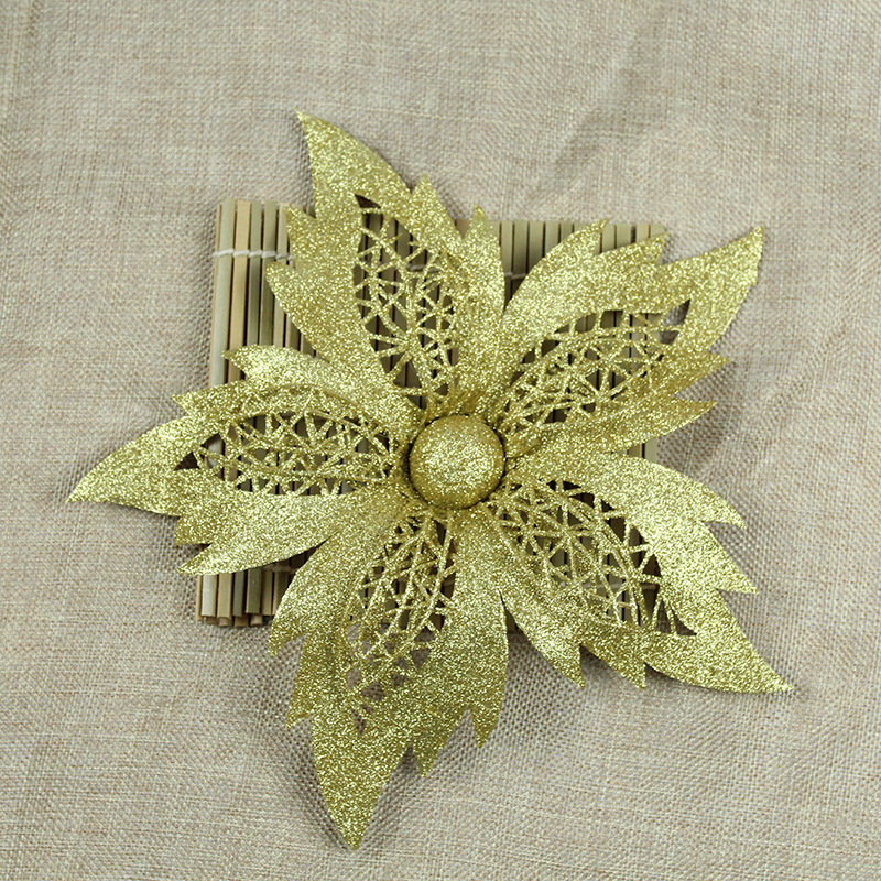 クロスボーダーシェイプクリスマスフラワークリスマスデコレーションクリスマスデコレーションクリスマスツリーシミュレーションフラワーゴールドパウダープラスチックフラワーリース
