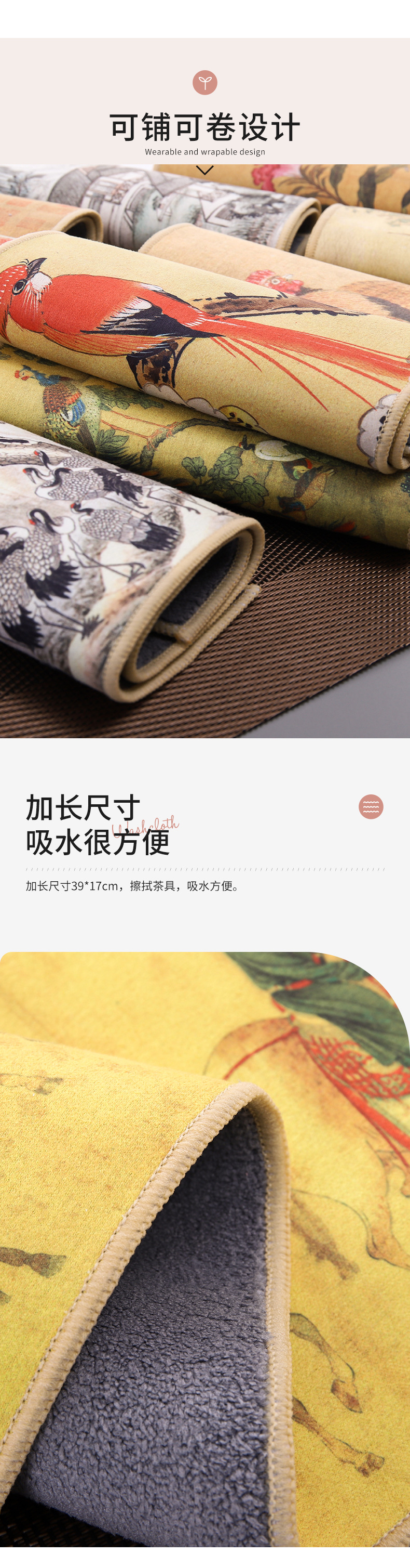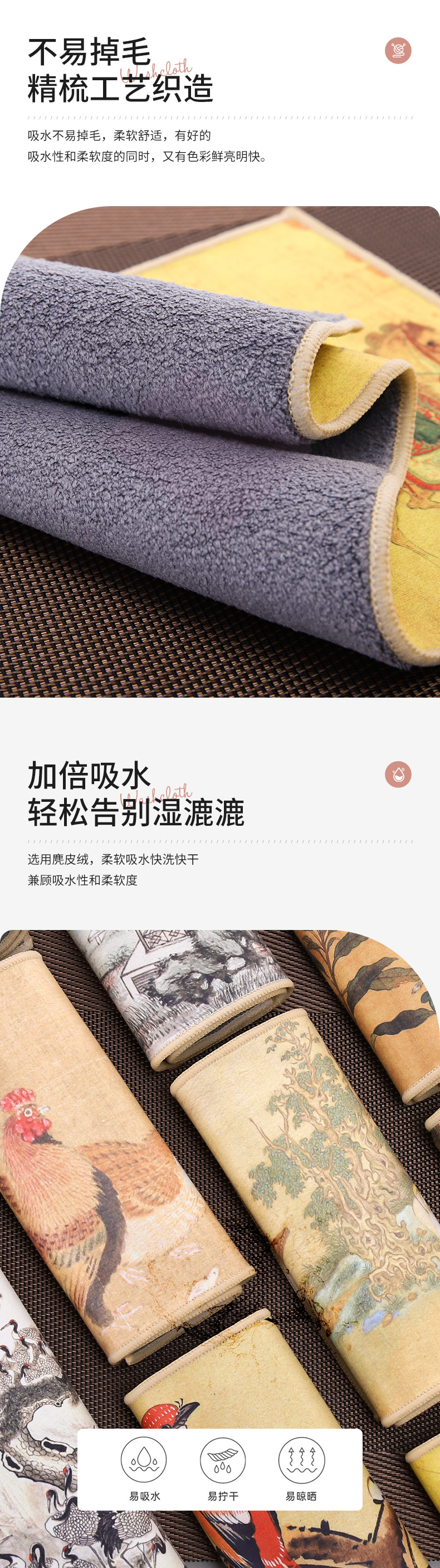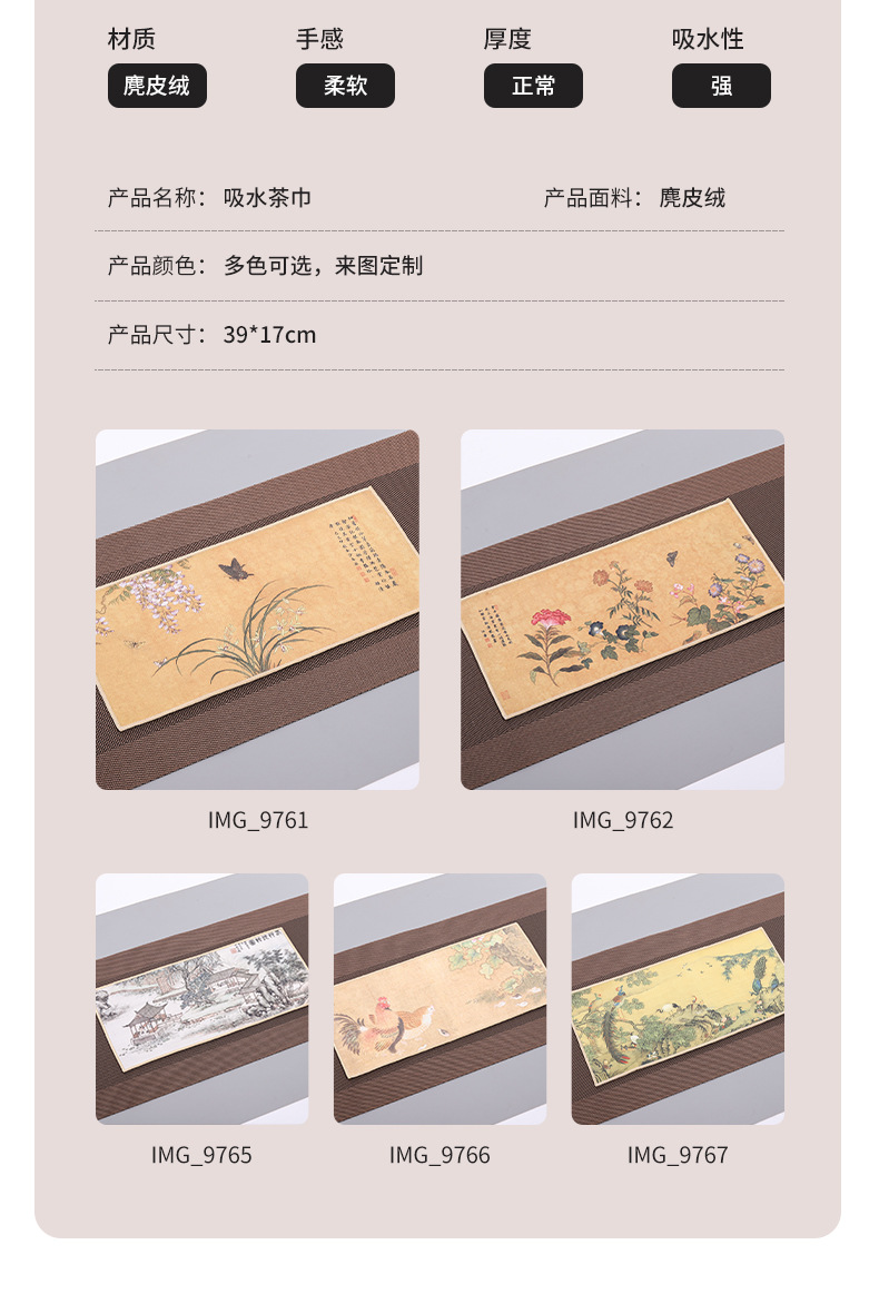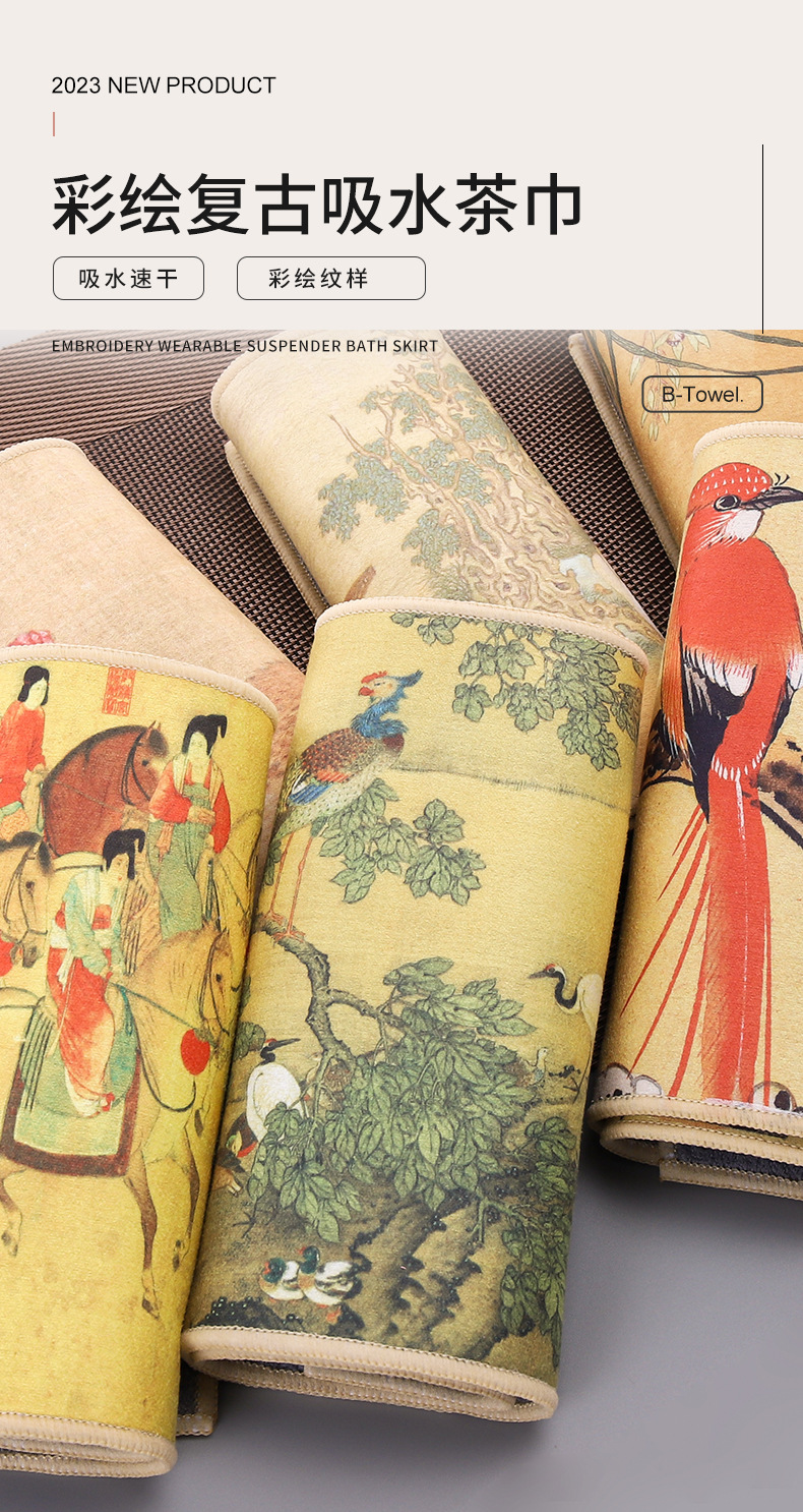 スエードの中国風の国画の彩色はレトロな吸水の茶巾を塗って茶器の茶台の茶の杯のパッドの両面の小さいタオルを拭きます。