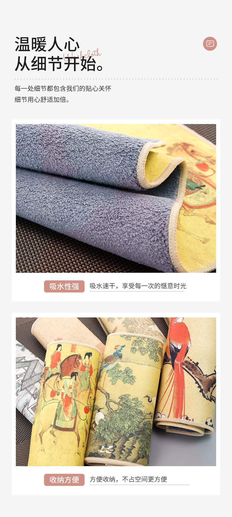 レトロ中国風古風茶巾は吸水スエードのプリント茶マットの両面に茶巾茶カップマットを使うことができる