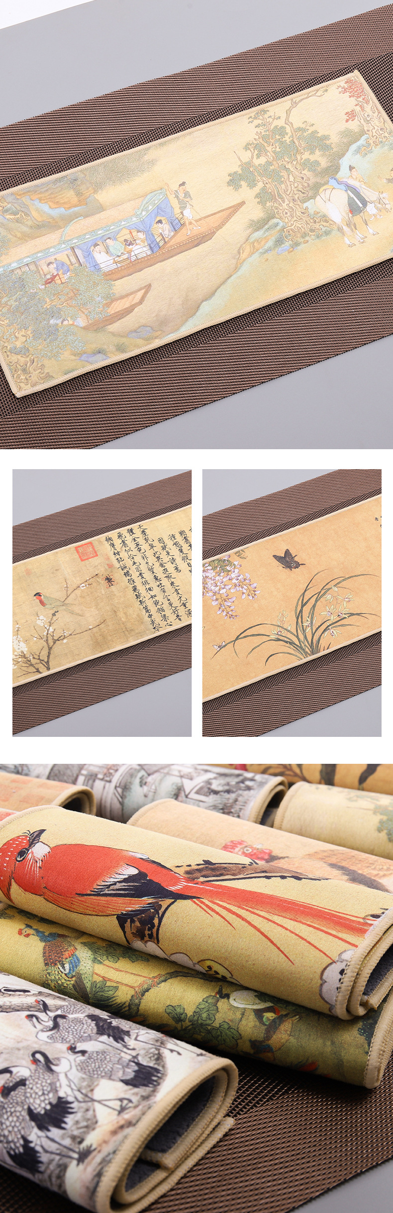 カラー 千里の江山,木の下で琴を聴く,琴を携えて友を訪ねる,カササギの枝,ビワ山鳥,川のボート,清明上河図,すずめ華秋色,大河ボート,美しい山河,飛鳥の梅,鳥の花の香り,家と万事興,冬梅,茶道