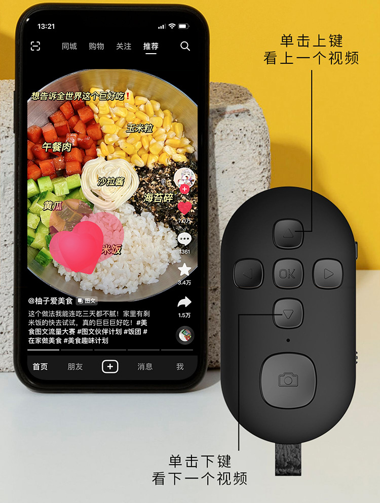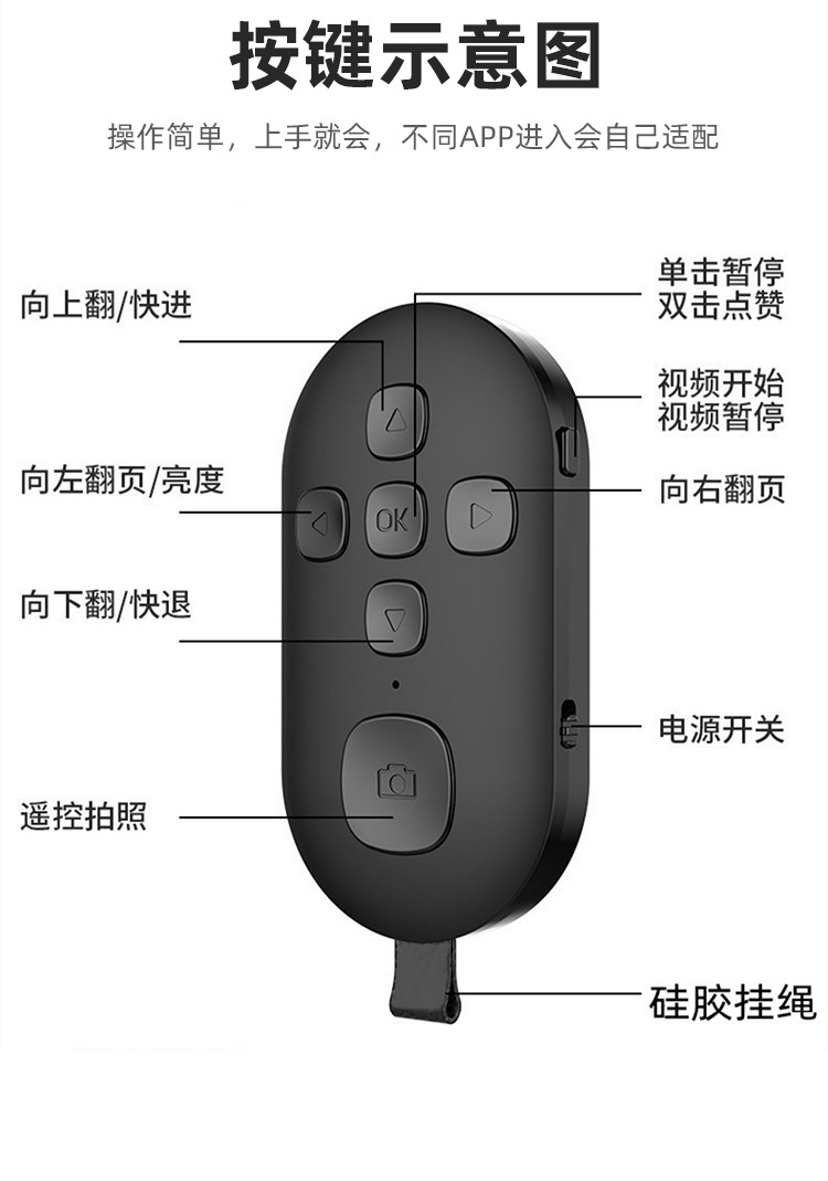 遥控器手机蓝牙神器自拍抖音刷短视频拍照拍摄电子书翻页多种功能