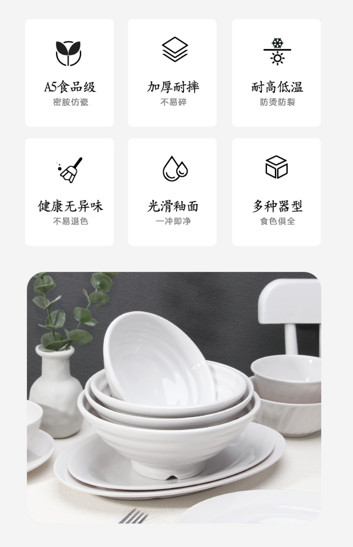 9 wora5白色模造磁器食器自助料理皿業務用麻辣热ボウルナット粉牛肉ラーメンボウル専門店