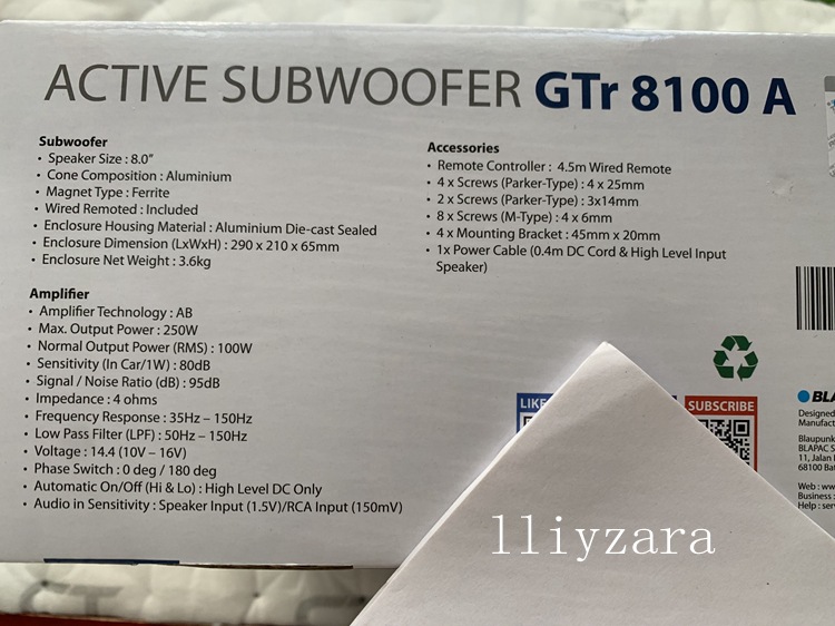 ドイツ藍宝blaupunktアクティブ8インチサブウーファーgtr 8100 aはab級アンプを持っています。