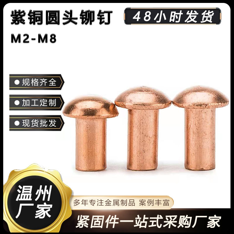 Gb867紫銅半円頭中実リベットm 2m 2.5m 3m 4m 5m 6m 8円頭手打ち式リベット